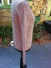 This Charter Club sweater is a stunning addition to any wardrobe, with its metallic silver and gray cotton fabric knit in a solid pattern. The long-sleeve cardigan has a round neckline and hook and eye closure accents. It's perfect for formal occasions, weddings, or cocktail parties, and the reflective material makes it a great choice for all seasons. The sweater fits regularly and is available in size P/P for petites. The brand is well-known for its quality and style, and this sweater is no exception. 51% cotton, 32% polyester and 11% metallic. 34” chest, 31” waist, 22” from shoulder to hem and 24.5” sleeves. Hook and eye closure.