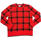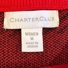 This is a great looking sweater by Charter Club in a red and black cotton acrylic blend. Red sweater has a black plaid pattern and is in a woman’s size medium. Sweater is an excellent gently used condition.