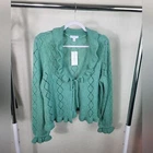 Charter Club Wool Blend Ruffle Front Tie Cardigan Romantic Feminine Knit