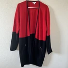 Charter club Women’s Longline Cardigan XL Red Black Dressy Church Work Office in great condition/ stretchy/ zip pockets / color lock red and black 21” across pits 33” length 31” sleeve from neck Approximate measurements All final sale #90 Dressy church work office business career wear teacher party Holiday Christmas party