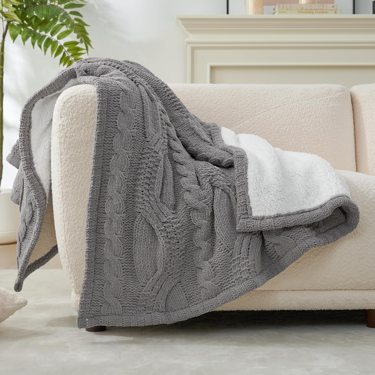 This blanket is unbelievably soft and cozy—perfect for snuggling on the couch! The reversible design (chenille on one side, sherpa on the other) makes it extra versatile, and the heavyweight fabric keeps me warm without feeling bulky. The cable knit adds a stylish touch, and the size is just right for curling up solo or sharing. Washes well, too—zero shedding or pilling. A must-have for chilly nights!