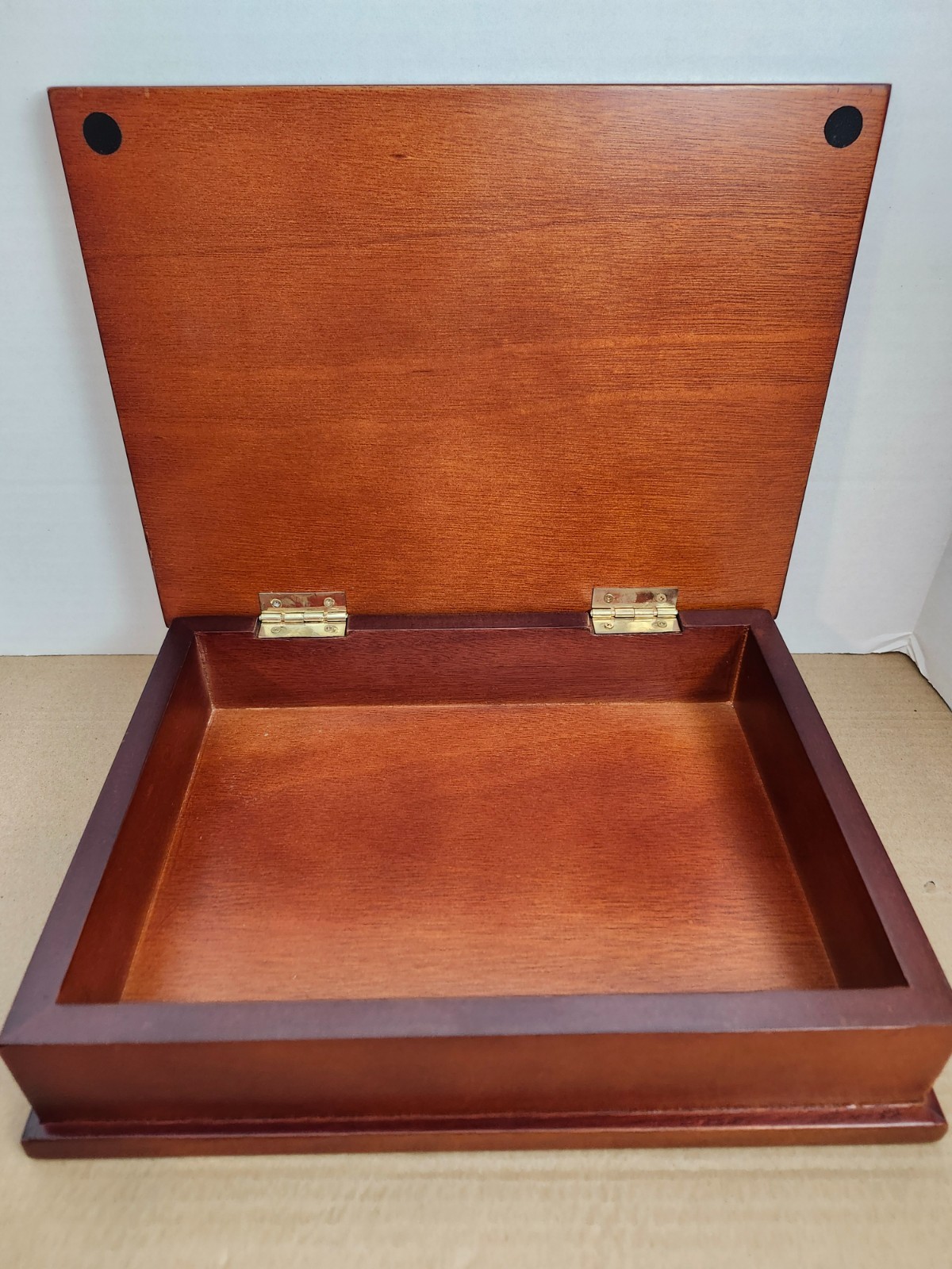 The cherry wood event memory box is a medium-sized rectangular storage box made of wood, featuring a brown color and engraved with a theme of eventful memories. This keepsake box is perfect for all occasions and is easy to care for by simply cleaning with a damp cloth. With dimensions of 11 inches in length, 8.5 inches in height, and 3 inches in width, this storage box is ideal for storing and preserving special memories in any room of the home. The Wooden brand ensures quality and craftsmanship in this decorative collectible.