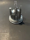 Add a touch of Chicago pride to your desk with this stunning pewter-looking paper weight featuring the iconic Bean and Skyline design. Perfect for collectors or anyone who loves the windy city, this paper weight is made by Great Chicago Gifts and weighs in at just 6.7 ounces. With a package dimension of 5 x 4.02 x 3.86 inches, it's the perfect size for any desk or display shelf. This paper weight is not just a beautiful piece to look at, but it is also functional and will keep your papers and documents nice and steady while you work. It is made of high-quality materials and is not discontinued by the manufacturer. Batteries are not required to use this paper weight. Get yours today and add a touch of Chicago to your workspace!