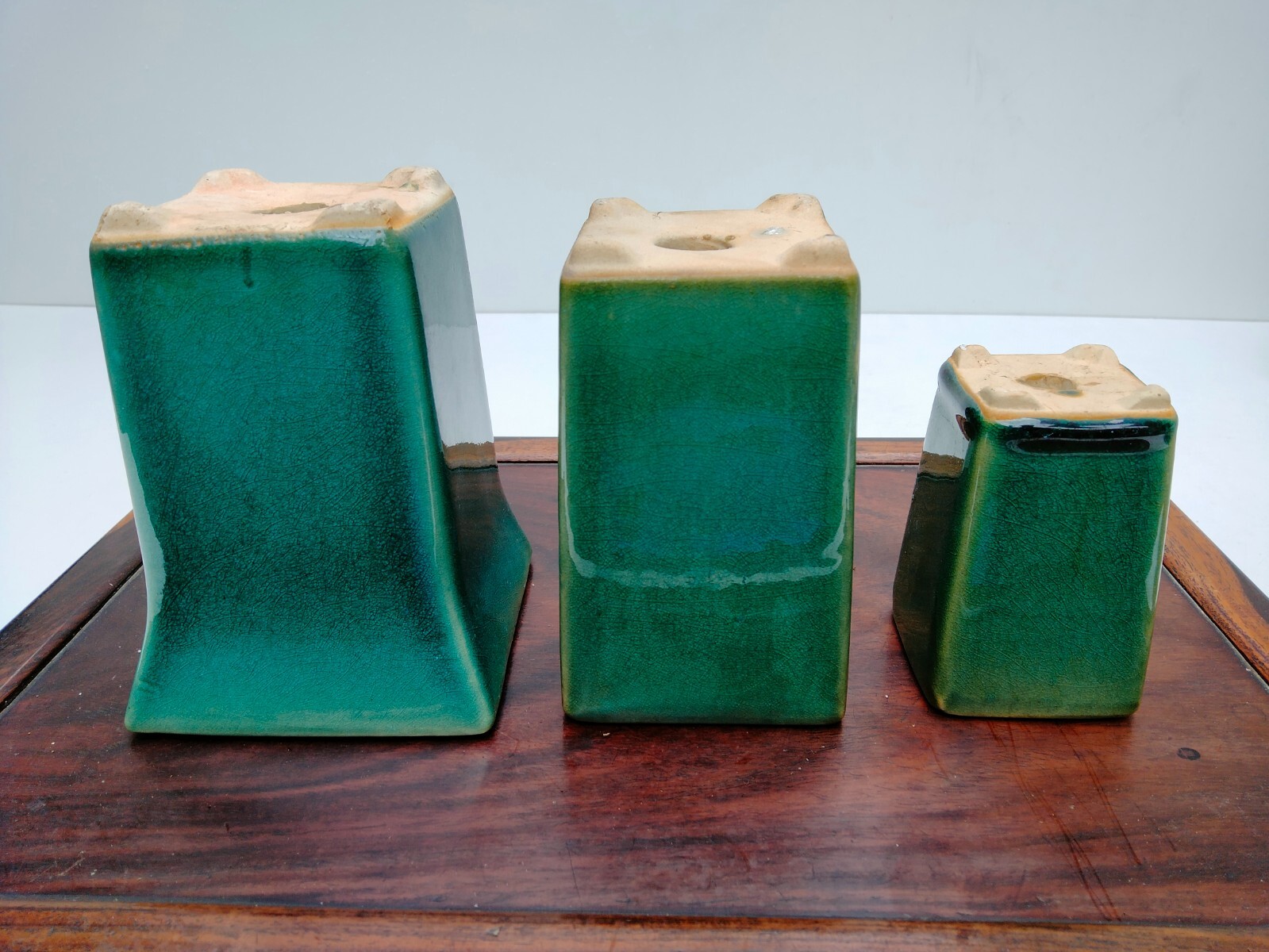 Chinese Canton Bonsai Tree Pot Set of 3 pcs Green Glazed KENGAI Description Shipping from JAPAN. 100% Official Products. There are unique glaze characteristics of Canton pots, such as drips, spots, and chips. Please check the photos. Approximate Size: Large: Width: 8.8 cm (3.46 inches), Height: 12.5 cm (4.92 inches) Medium: Width: 7.3 cm (2.87 inches), Height: 12.2 cm (4.80 inches) Small: Width: 5.3 cm (2.09 inches), Height: 8.4 cm (3.31 inches) ※The wood stand is not included. Only the pot is for sale. Returns We accept returns within 30 days of delivery, but please note that the customer is responsible for the cost of return shipping. Our return policy guarantees 100% satisfaction. If you receive an item that is significantly different from its description on our website, please contact us by email to request a refund. In such cases, you will need to return the item to us before we can process your refund. International Buyers - Please Note: Please note that import duties, taxes, and other charges are not included in the item price or shipping cost. These charges are the buyer's responsibility. We kindly advise you to check with your country's customs office to determine what these additional costs will be before placing a bid or making a purchase. Please be aware that such charges are typically collected by the delivering freight (shipping) company or when you pick up the item. Therefore, please do not mistake them for additional shipping charges. We comply with all applicable US and international laws and regulations regarding the declared value of merchandise. Please note that we cannot mark items as "gifts" or declare a lower value than their actual price. Such practices are prohibited by law, and we are committed to adhering to ethical and legal standards. If you cancel your order, we reserve the right to charge a cancellation fee. If there is an additional charge for shipping to your remote address, we will inform you and charge accordingly. We appreciate your understanding and cooperation, and we are happy to assist you with any questions or concerns you may have about international shipping and customs regulations. Thank you for your interest in our products and services.