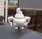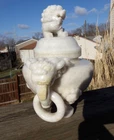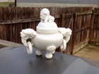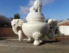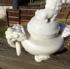 Antique Chinese Finely Hand-Carved Yu Buddhist Ritual White Jade Censer Incense Burner – Qing Dynasty This exquisite antique Chinese censer, originating from the Qing Dynasty (18th to 19th century) , is a masterwork of craftsmanship and historical significance. Finely hand-carved from high-quality white jade with delicate lavender and green hues, it embodies elegance and spiritual reverence. Design Details: The censer features a majestic Buddhist lion finial atop the lid, symbolizing protection and strength. The handles are skillfully crafted as auspicious beasts with carved rings, showcasing the intricate artistry of the Qing era. Condition: Overall in very good condition, with a small chip to the inner rim of the lid (please refer to the photos for details). Dimensions: Measures approximately 7 inches tall and 7 inches long, making it a perfect centerpiece for display or collection. A timeless example of Qing Dynasty artistry, this piece is both a stunning work of art and a meaningful addition to any collection of fine antiques or Asian artifacts. Don’t miss the chance to own this rare and beautiful treasure!