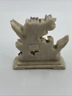 Chinese Multi Hardstone Duck Carving Sculpture. Depicts 2 ducks among floral motifs on a rectangular carved stone pedestal base. Measures about 6 in tall and 1 in wide and weighs about 1 lbs. It is in good condition, with no significant signs of wear. See pictures.