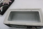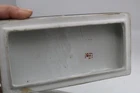 This is a beautifully painted porcelain box that was manufactured in China. I don't know who painted it. It is not marked with a name. It measures 8.25" x 4.25" and is 4 inches tall. There is plenty of room for jewelry or whatever. Very pretty and in good conditon.