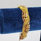 Amber & Clear Crystal Prong Set Rhinestones Gold Tone Twisted Chain by Christina Collection. Very Sparkly And Bright Colored Crystals. Strands On Bracelet Are Braided Together. 7" with 2" Extender.