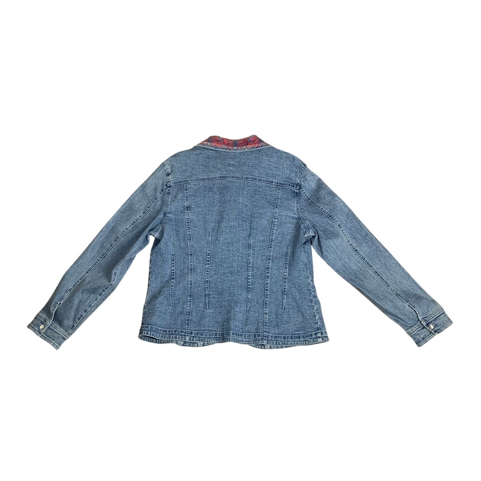 Christine Alexander Tailored Denim Trucker Jacket With Red Swarovski Crystals- Size XL Feminine cut with a curved hem Swirly red Swarovski Crystals in on the front and collar Silver / Clear large rhinestone buttons Cropped Front chest pockets Back Darts create a slight peplum Medium wash denim SIZE: XL CONDITION: Excellent Used Condition MEASURMENTS: Bust: 21 " Length (back of collar to hem): 24" *Consistent 5 Star Seller - Shipping M, W, F & SA *Feel free to Send me an OFFER - All Reasonable OFFERS Welcome! *From a Smoke-Free/Pet Friendly Home *Check out my closet for other similar sizes & don't forget to BUNDLE for more Discounts!! TAGS: Christine Alexander Tailored Denim Trucker Jacket With Swarovski Crystals - Size XL Medium wash denim jacket Denim Jacket with bling denim coat Rhinestone denim jacket Red rhinestone jacket Blinged-out jean jacket Sparkly tailored denim jacket Country glam jacket Curved hem jean jacket Shimmering Swarovski Crystal buttons Western statement jacket Peplum back denim jacket Feminine cut denim jacket Festive rhinestone jean jacket maximalist denim jacket Shiny casual layering piece Blingy western style denim jacket Coastal grandma jean jacket Canadian tuxedo jacket Tailored denim jacket XL Sparkly casual jacket Swirly red Swarovski Crystals jacket Designer denim jacket Holiday party denim jacket Statement jean jacket Medium wash feminine jean jacket Shimmery peplum jean jacket Stylish western rhinestone jacket Bedazzled Trucker Jacket