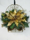 Christmas Floral Basket Handmade For hanging on the wall, door or setting it on a tabletop or shelf The Arrangement is in a Gold Wire Basket Has Two gold glitter Pinecones inside the basket under the arrangement they do not come out. Has greenery, a big gold flower Gold glittered pinecones, gold balls, and gold tipped sprays Measures 14 inches Tall 15 inches wide from end to end of the arrangement Very beautiful and Unique Please see Photos for more description COMES FROM A SMOKE FREE HOME THANKS FOR LOOKING COME AND SEE MY other items Powered by SixBit's eCommerce Solution