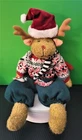 Christmas Reindeer with Santa Hat & Sweater 18” Long Shelf Sitter Dangling Legs. Used in good condition from a smoke and pet free home.