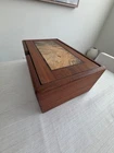 For bid is a Chuck Stewart wooden jewelry box. Known as a local Oregon craftsman for high quality wooden boxes. This box measures: 14 3/4" x 9" x 5 1/2". Only shipping to the US.