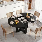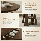 43.3in-59in Extendable Round Dining Table for 4-8, Modern Oval Table with Removable Leaves, Wood Base Storage Shelf for Kitchen & Living Room (3 Colors) Maximize space and style in your home with our 43.3in-59in Extendable Round Dining Table—designed for versatility, functionality, and modern farmhouse charm! Available in three timeless finishes (Walnut/Black/Natural Wood), this table seamlessly transforms from a compact round table to a spacious oval table, seating 4-8 people (2-8 for Natural Wood style) to fit daily meals or family gatherings. Built with a sturdy cross-shaped base and a convenient storage shelf, it’s perfect for kitchens, dining rooms, apartments, and more—blending practicality with elegant design. Common Key Specifications (All 3 Styles) Item Details Origin China Material High-Quality Thick MDF Table Shape Round (Retracted) → Oval (Extended) Extendable Dimensions Retracted: 43.3” (Round); Extended: 59.06” (L) × 43.31” (W) × 29.53” (H) Assembled Height 29.53 Inches Assembled Weight Walnut/Black: 82.28 LBS; Natural Wood: 88.28 LBS Package Dimensions 48.03” (L) × 24.41” (W) × 7.48” (H) Package Weight 88.88 LBS (All Styles) Base Design Cross-Shaped Base with 1-Tier Storage Shelf (20.55” Wide) Extension Feature Removable Leaves, Smooth & Silent Rails; Leaves Store Under Tabletop Applicable Scenes Kitchen & Dining Tables, Living Room, Apartments, Offices Shared Core Features (All 3 Styles) Extendable Design for 4-8 People : Adapt to any occasion with a retractable design and smooth, silent rails! Easily expand from a 43.3” round table (seats 4) to a 59.06”L × 43.31”W oval table (seats 8) by adding the removable middle leaves—perfect for daily small-family meals or large family gatherings. The extension leaves store neatly under the tabletop when not in use, keeping your space flexible and clutter-free. Extra-Large Under-Base Storage Shelf : The cross-shaped base features a 20.55-inch wide 1-tier storage shelf, ideal for organizing tableware, kitchen essentials, napkins, or decorative items. Keep your tabletop clean and tidy while maximizing storage space—no more messy clutter on your dining surface. Multifunctional & Versatile Use : Boasting a modern farmhouse style, this table seamlessly integrates with various decor aesthetics. It’s space-saving for daily use and can be transformed into a conference table, library table, office desk, craft table, or coffee table when extended. The spacious circular design encourages family connection, creating warm mealtime moments. Structurally Stable & Durable : Crafted from high-quality thick MDF with a sturdy cross-shaped base, ensuring excellent stability and strong load-bearing capacity. The scratch-resistant, water-resistant tabletop is easy to clean—simply wipe with a damp cloth to remove spills or stains, maintaining a polished look for years of daily use. Easy Assembly with Detailed Guide : Comes with detailed installation instructions, labeled parts, and all necessary hardware tools. Follow the step-by-step guide for hassle-free assembly—no professional skills required. If you have installation questions, receive defective products, or missing parts, our team is ready to assist you. Style Options & Unique Details 1. Walnut Extendable Dining Table Color: Walnut | Features a rich walnut finish with a warm wood-grain texture that exudes timeless elegance and rustic charm. This classic tone complements traditional, farmhouse, or eclectic decor, adding depth and warmth to your dining space. It seats 4-8 people and weighs 82.28 LBS, making it a sturdy, stylish centerpiece for any kitchen or dining room. 2. Black Extendable Dining Table Color: Black | Boasts a sleek, modern black finish that offers a contemporary, minimalist look. The bold black tone pairs perfectly with industrial, modern, or Scandinavian decor, adding a polished, sophisticated touch to your space. It seats 4-8 people and weighs 82.28 LBS, combining durability with a clean, versatile aesthetic that elevates any room. 3. Natural Wood (Wood Color) Extendable Dining Table Color: Natural | Features a light, natural wood finish that brings an organic, airy vibe to your home. The subtle wood-grain texture complements rustic, Scandinavian, or minimalist decor, adding a touch of nature to your dining area. Unique to this style: it seats 2-8 people (accommodating smaller gatherings or solo use) and weighs 88.28 LBS, offering extra sturdiness for daily use. Our Quality Guarantee (All 3 Styles) We stand behind the quality of our Extendable Round Dining Tables! Each table comes with a 1-Year Quality Warranty —we cover any manufacturing defects or issues within one year of purchase. Plus, enjoy a 30-Day Free Return & Exchange Policy : if you’re not completely satisfied with your dining table, simply return it for a full refund or exchange within 30 days, no questions asked. Add versatility, storage, and style to your home with this extendable dining table. Choose the finish that best fits your decor, and enjoy a space-saving design that adapts to your needs—from daily meals to holiday gatherings. Perfect for small apartments or growing families, this table is a practical, long-lasting addition to any home. Add it to your cart today!