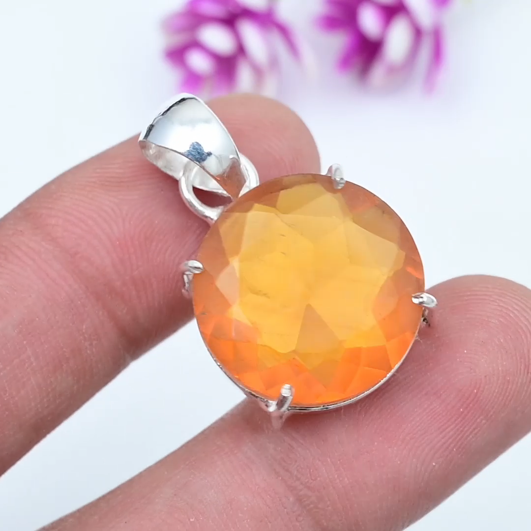 HomeCitrine Gemstone Handmade Pendant in 925 Sterling Silver Jewelry