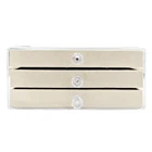 Acrylic storage box dimension is 9.5″ x 5.5″ x 4.5″. It is made with crystal-clear material and velvet lining, keeps your cherished jewelry dust-free, and it's easy to clear the box with the damp cloth.velvet tray make Jewelry box stylish look and provide your jewelry better protection. Velvet jewelry box with 3 layer drawers, each drawer attached with a diamond-like handle that slide out smoothly. Top layer has 8 slots to hold rings and earrings and 3 grid for some small jewelry. Middle layer possess 6 different section for different storage meet. And the bottom drawer with no divider can contain some big jewelry or Medallions. This Jewelry box can rearrange the drawers and trays according to your needs, DIY the space you need with the adjustable dividers in compartments, the velvet trays drawers also can be took out for use independently. Clear Acrylic Organizer is the best jewelry box to storage your jewelry and also a cosmetic storage box. So It is great gift for girls or fashion lover in your life. It can hold a lot of accessory and jewelry like rings, ear studs, necklace, pendants, bracelets, cufflinks, brooches, coins and so on. You will leads your small jewelry in order and easy to find.