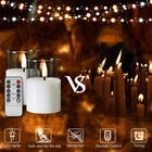 Add a uniquely beautiful to your home decor and create a soothing ambiance with flickering flameless glass candles set Speciafications: - set of 6 battery votive candles 2 inch diameter 3 inch height, 1 remote control, one user manual. -Clear, amber gold, smoke grey,green and red colors are available - candles are made by mirror-like premium glass, simulated with 3D black wick flame, realistic enough to fool your eyes. convenient remote control allows you control power, set 2/4/6/8 hours timer, set flickering or static flame within 20 ft range. -battery powered candles, each candle is operated by cr2450 coin cell, which lasts over 350 hours, 2 longer battery life. - Great for home, wedding, party decor and also wonferful gifts for housewarming, Christmas, Halloween and so on. Package Includes - 6 pieces flameless candles in clear glass jars (size: Φ 2" x H 3"), 1 10-key remote controller and manual instructions. 6 x CR2450 coin cells included. Realistic Flameless Candles - these candles are constructed with premium real glass not plastic and simulated with flickering black wick flame, giving off warm white glow, creates the illusion of real flames. Remote Control & Timer Function - remote controller works for all candles, which allows to control power, set 2/4/6/8 hours timer, adjust brightness and set flickering or static flame effect within 20 ft. Safe Comes First - these led candles are flameless, dripless, no smoke, no odor, hazard free, especially friendly for family which has naughty kids or pets, great alternative to real candles. Great Decor & Gift - these pretty led candles are ideal as table centerpieces, home, wedding, party, seasonal holiday festival decor and also wonferful gifts for friends and family.