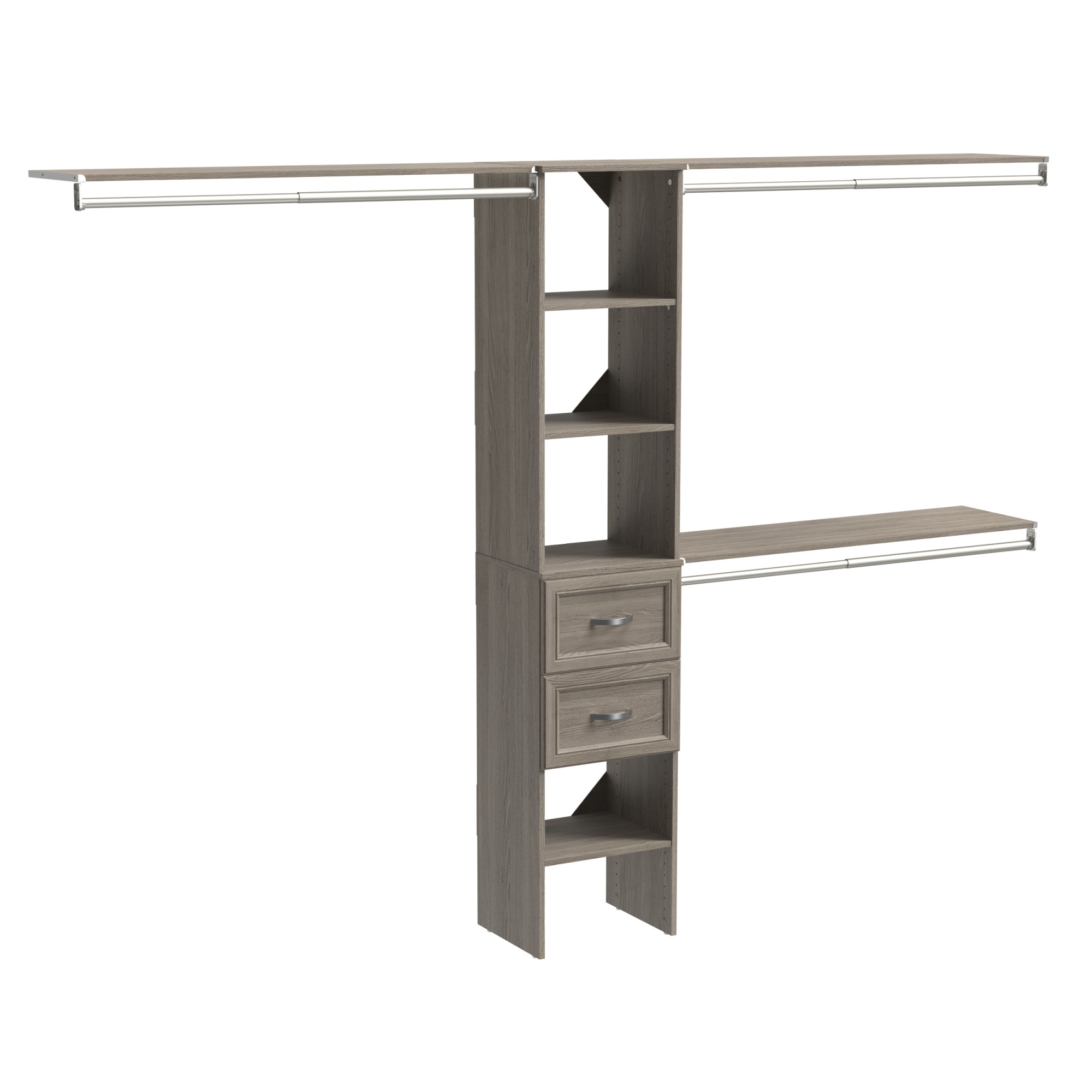 This closet system is a game-changer! Super easy to install, and it instantly made my space look organized and stylish. Love the mix of shelves, drawers, and hanging rods—perfect for maximizing storage. The laminate finish looks high-end, and the adjustable design fits my closet perfectly. Highly recommend for anyone wanting a custom look without the hassle!