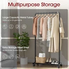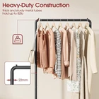 HEAVY-DUTY CONSTRUCTION: Crafted from thick and high-quality metal, Sakugi heavy-duty clothes rack boasts a sturdy structure that can support up to 82 pounds of weight and accommodate up to 33 garments. Rest assured, this closet rack is built to last and provides long-lasting durability for all your hanging needs. MULTIPURPOSE STORAGE: With a height of 59 inches, Sakugi clothes hanger rack offers versatile storage for various clothing collections, both short and longer garments. The anti-slip stoppers at each end ensure clothes stay in place without falling off. Moreover, the bottom mesh shelf creates extra storage space for shoes, boxes, bags, etc. CONVENIENT TO MOVE: Sakugi garment rack for hanging clothes is equipped with four 360-degree rotating casters, two of which can be locked. It allows you to smoothly move or securely fix the garment rack according to your needs. This clothing rack with shelves provides easy usability and flexible storage solutions for home or office use. EASY TO ASSEMBLE: Sakugi clothes rack for hanging clothes comes with a detailed manual, video, and installation tools, making the assembly process straightforward. By following the step-by-step guide, even a single person can easily complete the installation in minutes. Enjoy the simplicity of setting up your garment rack. WIDE APPLICATION: With a compact size of 28.7"x 14.8"x 59.0", the sleek and modern Sakugi wardrobe rack is a perfect fit for multiple scenes and different decors. Whether it's for your bedroom, closet, laundry room, or office, this garment rack effortlessly complements your space while providing practical storage for your clothing. Product Description
