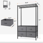 Brand Raybee Color black Material Metal, Fabric Recommended Uses For Product Clothes display + storage rack for hanging and placing various types of clothes, shoes, bedding, accessories and other heavy items. The hanging space is suitable for hanging all kinds of clothes: coats, skirts, pants, shirts, ties, umbrellas, etc. The shelves are suitable for visitlng all kinds of items: shoes, dolls, quilts, books, decorations, ect. Clothes display + storage rack for hanging and placing various types of clothes, shoes, bedding, accessories and other heavy items. The hanging space is suitable for hanging all kinds Product Dimensions 15.7"D x 35.8"W x 71"H About this item metal 【Extra-Large Capacity Clothing Rack with 4 Drawers】This Raybee clothes racks for hanging clothes combines display and storage, and the special heightening design makes this heavy duty clothes rack easy to hang dresses, coats, shirts and say goodbye to wrinkles. Pants, socks, underwear and small items can be stored in the 4 drawers below. Make use of the top shelf to store boxes and make your room more tidy. 【Sturdy Metal Frame 445lbs Total Load Capacity 】Each layer of metal shelf bears 94lbs, and hanging rod bear 73lbs. The entire clothing racks for hanging clothes is made of high-grade metal. The sturdy all-metal frame can be used for many years without worrying about deformation or wear. The 4 folding fabric drawer is simple to install, and it is friendly clothes. You don't have to worry about scratches on the floor of metal storage rack, which is perfect choice for gift-giving or housewarming. 【Adjustable DIY Clothing Rack& 10 Minutes Easy Assembly 】The garment racks for hanging clothes is designed with a slip sleeve locking system. No bolts, screws or nuts are required to assemble in less than 10 minutes. The metal shelf height is adjusted at a height of 1 inch at a time. If you need to store more boxes or suitcases, you can remove the drawers and store your underwear or socks in the drawers of your wardrobe to increase your storage space. You can DIY your own garment rack accoding to your storage needs 【Multifunctional Portable Clothes Rack】With the help of this free standing small clothing rack, storage space is created in tight spaces, with a compact design suitable for corners, apartments, bedrooms, clothing stores, walk-in closets, cloakrooms, laundry, etc. The simple and vintage style easily matches with your other home furniture and is a great choice for you. 【Anti-fall Locks & Adjustable Feet】The wardrobe wire garment rack for hanging clothes has 4 adjustable legs to protect the floor from scratches and keep the heavy-duty clothes rack stable. We also have two anti-fall locks for you, and you can choose to fix the freestanding wardrobe to the wall. On Dec 24, 2024 at 05:39:48 PST, seller added the following information: