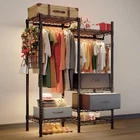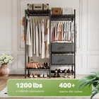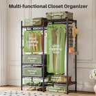 【Extra Large Size & All-in-one Multifunction Closet Rack】Extra large garment rack size 46.3"Wx16.9"Dx76.2"H offers you various storage area to place your clothes,accessories, shoes,etc. Clothes hanging rod is great for hanging suits, coats, long dresses, shirts or other clothes. Shoes can be put on the bottom of the shelf,and quilt,blanket and storage box can be organized on the shelves. Portable closet is suitable for cloakrooms, bedrooms, apartments,school dormitories, etc. 【Super 1200LBS Capacity & Side Mesh & Hooks】Heavy duty clothing rack with space-saving Design can store hundreds of clothes, suitcase and organization boxes. The Wardrobe Closet load capacity up to 1200LBS, not easily deformed. Portable side storage mesh and hooks create more storage space to organize your messy items into neat condition 【Adjustable Clothing Rack DIY Freely】Clothes racks for hanging clothes with adjustable hanging rods and removable sturdy wire shelves. You are free to DIY storage space and the height of shelves according to your needs and easily to store the different length and size of your garments. 【Sturdy & Durable & Rust-Proof】 The entire metal clothing rack is made of high-grade metal and equipped with advanced anti-rust painting process. Easy to clean, Moisture-proof and Rust-proof. High quality material makes the clothing racks for hanging clothes stable, sturdy and durable enough to hold heavy garment pieces such as winter wear, gowns, handbags and footwear 【20 Minutes Easy Assembly & SWEET SERVICE】 The portable wardrobe rack is designed with a sliding sleeve locking system and easy to assemble without nuts or bolts. If you have any doubts or question, please feel free to let us know and you’ll get prompt reply within 24 hours.