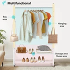 【3-In-1 Design】- This hanging clothes rack combines a coat rack , a clothes rack and a shoe rack, which can help you keep organized daily. This hanging rack can not only be used to hang clothes, but the branches on both sides can also be used to hang bags, hats, etc.; the bottom can be used to place shoes and boxes organizer and so on. It improves the use of space to some degree, maximize your storage space. 【Sturdy and Durable】- This heavy duty clothes rack is made of high quality steel, all steel tubes, make a sturdy clothing rack holds up to 130lb load. The whole steel tube design also greatly improves the stability of the hanger, say goodbye to shaking and bending. 【Dimension】- With an overall size of 38.19’’L x 14.17"W x 63.39"H, the rolling rack utilizes the limited space to expand your cabinet and make the room more tidy. 【Easy to Move and Locked】- Our rolling clothes rack is equipped with 4 high quality swivel wheels, which help easily move the hanger racks to different rooms to meet your needs. For convenience, 2 wheels can also be easily locked to keep the hanger stationary. Don't worry, even when full of clothes, this portable clothes rack can be easily moved and locked. 【Additional Wardrobe】- hanging rack can not only be used for organizing and storing, but also for the clothing show and display. It can make messy clothes more orderly, creating more storage space for bedroom, laundry, living room or hallway. No more worrying about where to put your new clothes.