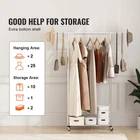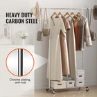 Product Description Efficient Clothing Storage: Discover the Perfect Garment Rack Are you tired of clothes piling up? The spacious design of the clothes rack helps reduce clutter in your living space. Instead of leaving clothes on chairs, beds, or other surfaces, you can hang them neatly on the rack, keeping your room tidy and free from unsightly clutter. Adjustable Length The hanging rod can be extended from 30.7'' to 54.3'', allowing you to adjust its length and create specific sections for your bags, hats, or clothes. Expand Your Wardrobe Maximize storage and organization with the clothing garment rack's top hanging rod and bottom shelf. Hang and organize your clothes on the spacious rod, while the shelf accommodates shoes, boxes, and accessories. Mobile and Secure Experience ultimate flexibility with the rolling garment rack's four universal casters, including two lockable ones. Effortlessly gliding the rack across your bedroom for outfit selection or securely parking it in place during ironing sessions. Sturdy Structure With a thickened 1-inch (25.5mm) steel diameter, the heavy-duty garment rack effortlessly supports your clothing collection, providing exceptional strength and stability. Rest assured, your garments will be securely held and well-supported on this rack. Convenient Access Hanging clothes on a garment rack provides convenient access to your garments. You can quickly select your outfit for the day without the need to dig through a packed closet. Multi-purpose G arment rack is suitable for a range of settings including bedrooms, closets, laundry rooms, entryways, and more. Their adaptability allows you to utilize them wherever needed, making them a convenient and versatile storage solution for any space. Specifications Item Model Number: YD00015 Extendable Length: 30.7-54.3 in/781-1378 mm Width: 16.1 in/410 mm Height: 64.6 in/1640 mm Main Material: Carbon Steel Q235+chroming Steel Thickness: 0.6 mm/0.8 mm Pipe Diameter: 1''/25.4 mm Caster Diameter: 49.6 mm Caster Material: Rubber Product Weight: 7.28 lbs/3.3 kg Package Content 1 x Garment Rack 1 x Wrench 1 x Manual Extendable Hanging Rod: The hanging rod is extendable from 30.7'' to 54.3''. You can adjust the length of the rod to create customized sections that are perfect for your bags, hats, or clothes. Additionally, the hanging rod is designed with integrated circular tubing and stoppers on each side to prevent clothes from falling. Enjoy More Space: With a hanging rod and an extra bottom storage shelf, the clothes rack provides spacious storage even in small areas, allowing for the perfect display of clothes, shoes, boxes, or accessories. Moreover, the rolling clothing rod keeps your everyday garments or seasonal outfits always within reach. Move or Fixed: rolling garment rack come with four casters, two of which are lockable. Whether you need to effortlessly glide the rack across your bedroom for outfit selection or securely park it in place when ironing, these versatile casters ensure smooth mobility and steadfast stability, adapting to any situation. Sturdy & Durable: Crafted from heavy-duty carbon steel with powder coating and a thickened steel diameter of 1 inch (25.5mm), this heavy duty clothes rack boasts exceptional strength and stability. It ensures that it can effortlessly bear the weight of your clothing collection, securely holding and well supporting your garments. Versatile Usage: Our rolling clothing rack is not limited to the bedroom or closet. It can be used in various settings, such as laundry rooms, entryways, or even as temporary clothing storage in guest rooms or during events. This versatility allows you to adapt and use the garment rack wherever you need it most.