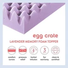 About this item Memory Foam 2-inch egg crate topper with increased airflow Amazing comfort with body-conforming memory foam Soothing lavender infusion to slip you into a relaxing dream Responsive active suspension isolates motion to provide undisturbed sleep for you and your partner CertiPUR-US certified memory foam, 3-year manufacturer's warranty Product Note: Please allow up to 72 hours for the topper to rise