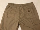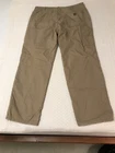 These Coleman work pants are perfect for any outdoor adventure, whether it be hiking, trekking, camping or just enjoying nature. The pants are made of a comfortable and durable polyester-cotton blend with a solid pattern and a fleece lining to keep you warm during the colder seasons. The 5-pocket design provides ample storage for all your belongings and the flat front and straight leg style offer a classic and versatile look. The pants have a zip closure and a waist size of 38 inches, with an inseam of 30 inches. Garment tag shows an inseam of 32 inches, but the measurements show an actual inseam of 30 inches. Rise is 12 inches. They come in a khaki tan color and feature easy care and comfort, making them suitable for travel, casual wear and workwear occasions. This is a great addition to any outdoor enthusiast's wardrobe. In a smoke free home. No tears or holes.