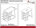 Coleton Standing Desk Brown Finish your project from a Standing position with the Ameriwood Home coleton Standing desk The Sturdy metal frame and Classic Espresso Finish on the laminated particleboard desk surface and shelves give a lasting clean look that matches any Décor Keep your work organized with a large work surface.The desk features 3 open shelves angled to create an a-frame look The desk stands at 42” tall giving you the option to stand while working or pull up a tall chair The desk surface can hold up to 80 lbs. And the Top, middle and bottom shelf hold 15 lbs., 20 lbs., and 30 lbs. The coleton Standing desk measures to be 42”h x 42”w x 25.2”D The Ameriwood Home coleton standing desk will add the perfect finishing touch to your home office. Take a step outside the box and complete your work from a standing desk. The sturdy metal frame and laminated particleboard desk surface and shelves finished in a classic espresso finish gives this desk a clean, industrial feel for your office. Stand up to work on your project then later give your feet a break and pull up a tall chair – it’s the best of both worlds. Desk is 42” tall. This beautiful desk features 3 open shelves angled to create an A-frame look and is perfect for storing books, notepads, and paper. The coleton standing desk ships flat to your door and requires assembly upon delivery. Two adults are recommended for assembly. The desk surface can hold up to 80 lbs. And the top, Middle and Bottom shelf hold 15 lbs., 20 lbs., and 30 lbs. Accordingly. After assembly, the coleton standing desk measures to be 42”H x 42”w x 25.2”D. Age Range Description Adult Style Transitional Minimum Height 42 Inches Shape Rectangular Desk design Computer Desk Is Electric No Model Number 9872096COM Desk Design Computer Desk Finish Types Engineered Wood Drawer Glide Mechanism Nylon or Plastic Lifting Mechanism Manual Room Type Office Includes All Assembly Tools Yes Brand Name Ameriwood Home Brand Ameriwood Home Is Customizable? No Required Assembly No Storage Options 3 open shelves Maximum Weight Recommendation 80 Pounds Base Engineered Wood Model Name Coleton Standing Desk Number Of Shelves 3 Drawer Glide Material Nylon or plastic Additional Features Adjustable Finish Type Engineered Wood Included Components Ameriwood Home Coleton Standing Desk, Espresso Base Color Espresso Number Of Open Shelves 3 Has Finished Back No Warranty Type Limited Item Weight 61.08 Pounds Recommended Number of People for Assembly 2 Top Color Espresso Furniture Leg Material Metal Special Feature Adjustable Leg Style Saber Leg Working Surface Diagonal Length 49.83 Inches Drawer Pedestal Count 1 Mounting Type Wall Mount Hutch Material Engineered Wood Color Brown Item Dimensions D x W x H 25.2"D x 42"W x 38.84"H Furniture Finish Espresso Base Material Engineered Wood Global Trade Identification Number 00029986987211 Frame Joint Type Mortise and Tenon or Similar Shape Rectangular Base Type Leg Product Care Instructions Wipe with Dry Cloth Recommended Uses For Product Working Manufacturer Ameriwood Industries Mfg Warranty Type (ie Parts, Labor) Provided Product Dimensions 25.2"D x 42"W x 38.84"H Style Name Transitional Top Material Type Engineered Wood ABOUT US We offer the best prices around on high quality products. Our Ebay store includes media such as books, movies, music and games while offering electronics, toys, sporting apparel, clothing, tools, general home, garden items and more. SHIPPING We are always working hard to ensure your package arrives as soon as possible. Please understand that some factors like weather, high postal traffic, and the performance of shipping companies are outside of our control. We offer free shipping to the lower 48 states and ship within 2 business days of payment, usually sooner. We do not accept P.O. Boxes. Please provide a physical address. RETURNS We offer a 30-Day Return Policy on items which you are not completely satisfied with. You have the option for a full refund or an exchange of the item. No returns are available on items shipped outside of the USA. CUSTOMER SATISFACTION We try our very best to make sure every customer is completely satisfied. If there's a problem, message us! We're happy to help.