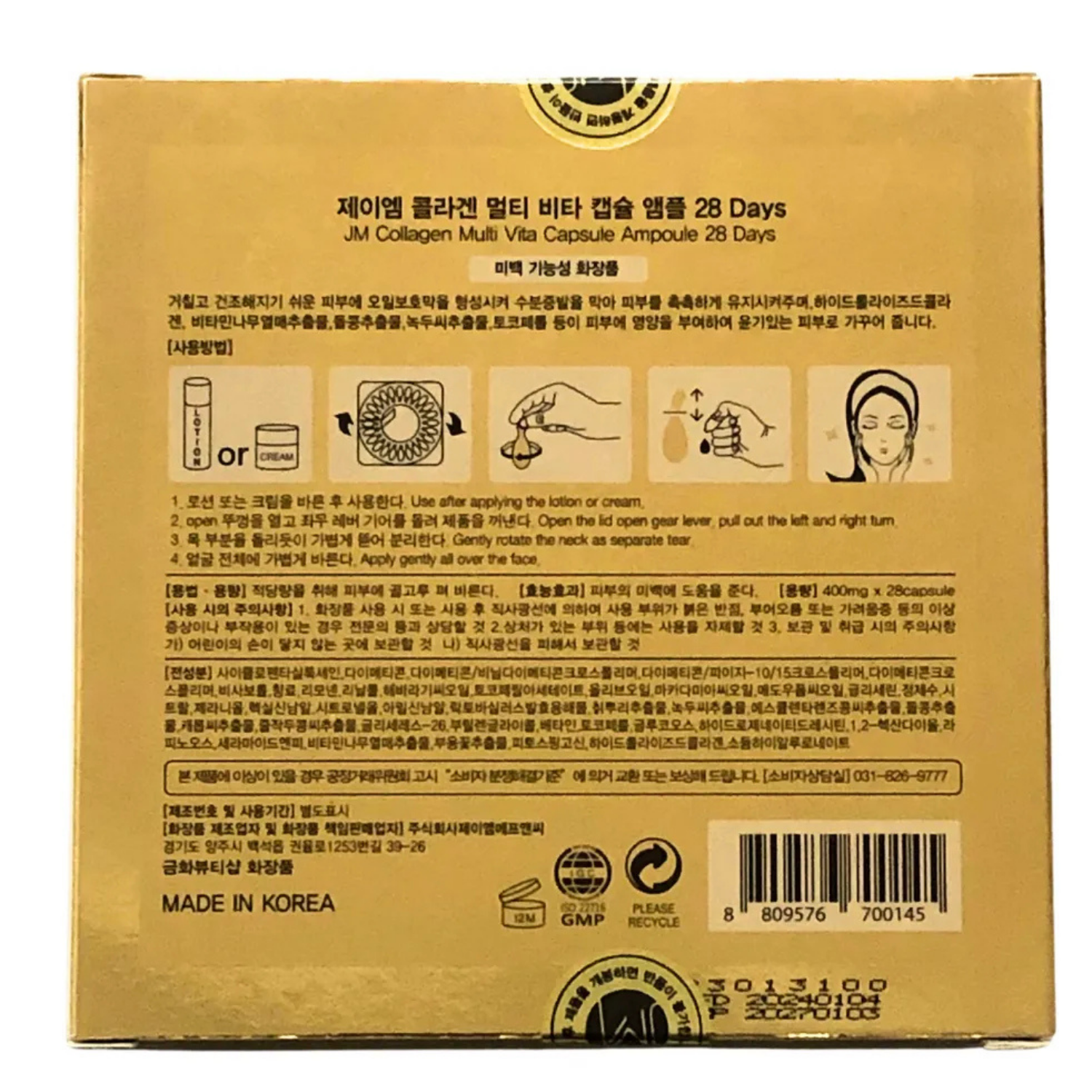 Title : Collagen Multi Vita Capsule Ampoule Weight :138g SKU : SKCT-25092406 Expired Date : 03/01/2027 Product Description : JM Collagen Multi Vita Capsule Ampoule 28 Days Product Description: Brand : JM Collagen Multi Vita Capsule Ampoule 28 Days Volume : 400mg x 28 capsules Expiration Date : 2027. 01. Country of Origin : Republic of Korea Benefits: It helps keep the skin moist by preventing moisture evaporation by forming an oil protective film on rough and dry skin. Hydrolyzed collagen, vitamin tree fruit extract, stone bean extract, green bean seed extract and tocopherol nourish the skin and make it shiny. How to use: 1. Use after applying lotion or cream. 2. Open the lid open gear lever. pull out the left and right tun. 3. Gently rotate the neck as separate tear. 4. Apply gently all over the face. Satisfaction Guaranteed If doesn't satisfied with your purchase, contact us immediately and we can work out something to solve it. ~ FREE Shipping Worldwide by Registered AirMail with Tracking Numbers Provided ~ Packaging Detail The product is well packed using bubble padded envelope/boxes to protect product from damages (bubble wraps) Shipping Policy All items will be shipped within 3 working days after receiving payment. If you do not receive the item in stated period of time, please do not hesistate to contact me. We will reply within 24hrs and will try to solve the problem for you. Custom Duties & Tax Policy Please note that the custom duties and tax are not included in the product price and shipping price. All custom duties and tax , if any, (by your country's customs) will be borne by the buyer and payable at the destination . We do not responsible for any custom fees, import duties or taxes in buyer country. Returns Policy Your satisfaction is our top priority. Items can be returned to exchange within 30 days. Before we ship the item, we will do a final check to make sure the item is in undamaged condition. If the item is missing in the transit, we will refund 100% to the buyer If the item arrived damaged / faulty or the wrong item is sent, please contact us with photo proof. We will arrange either a refund or a replacement for you at our expense. If you wish to return your item for any other reason apart from damaged on delivery or wrong item sent, please send the item back to us with the original unused and unopened packaging. The buyer will be responsible for the return shipping charges. Once the item reach us and inspected, we will arrange a refund to you. Please note that all opened items cannot be returned nor refunded. Buyer return incorrect item to us must use "Registered Mail" with tracking number so both parties can trace the parcel status. Contact Information If you require any help with your order, please don?t hesitate to contact us by the ebay message system. We will reply you within 24 hours. We've put our effort to make the listings incredibly detailed so that buyer can be well informed in making buying decisions. However if for some reasons you feel disappointed, please contact us first prior to leave negative feedback or open case/dispute so that we may work with you to make it right. We always strive to offer you a good service. Any questions please feel free to contact us. Please Check out my other Items for sale! Thanks for looking! Thank you for shopping with us!