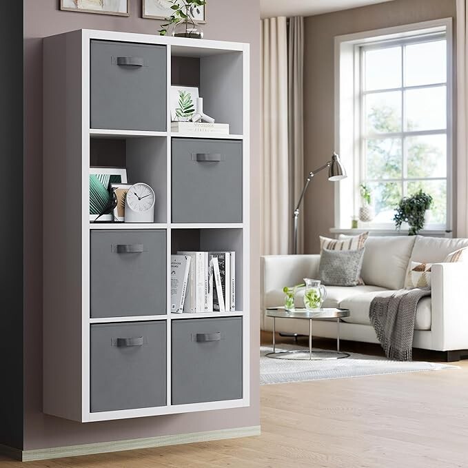 Fabric Storage Bins SUPERIOR STURDY DESIGN: The Neaterize sturdy storage cubes will exceed your expectations for quality, durability, and style. Reinforced handles on both sides enable quick and easy carrying. DIMENSIONS: 13(W) x 13(D) x 13(H) inches (33 x 33 x 33 cm) MULTI-PURPOSE ORGANIZERS: Achieve organizational bliss with these chic, functional fabric drawers! Designed to perfectly fit most cube organizers. Use in your linen closet, wardrobe, nursery, playroom, laundry room, office and much more. COLLAPSIBLE DESIGN: These versatile baskets are super easy to fold and store compactly when not in use. When you need 'em, they'll pop up in a flash, ready to store a variety of belongings such as underwear, socks, toys, crafts, cleaning supplies and what not. ENVIRONMENTALLY FRIENDLY: Just like you, we care deeply about our environment and it's protection. Our storage bins are made with eco-friendly materials that is sturdy yet breathable - easy on your hands, your belongings and the environment.