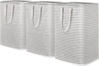 Laundry Hamper, Collapsible, Freestanding, Waterproof, w/ Easy Carry Handles Freestanding Structure: With a sturdy iron wire frame sewn into the top edges, so the laundry basket stands firmly upright for a very long time even when empty. Simply stretch the dirty clothes hamper out and it will stand upright on its own. Ultra Large: The laundry hamper measures 15.7 x 11.8 x 26.4 inches (L x W x H) with a capacity of 80L and 2 of set which easily contains 1.5x2 loads of laundry. It can hold a lot of items such as dirty clothes, wet towels, sheets, etc. Reinforced Handles: The 2 handles are reinforced with strong stitching and are long enough for carring with 1 or 2 hands. While full of items, our large hampers for laundry can also be easily carried up and down stairs or to a laundromat with ease. Premium Material: The foldable clothes basket is made from thick polyester and primuin cotton. The interior features PE waterproof coating can keep stored items dry. Simply use a wet cloth to wipe off the dirt. Do not clean it in washing machine and dryer, as doing so may damage the leakproof PE coating. Collapsible Design: Our laundry hampers for bedroom can be easily folded into 1 piece for a save space storage when not in use. It is ideal for laundry room, bedroom, bathroom, closet and even for college dorms, travel, rv, campers, hotel use and shopping. Product Description Rigid Iron Wire Made of well-constructed, collapsible thick terylene cotton fabric with rigid iron wire sewn into the top edges, so the laundry bin can keep its shape and stand upright. Simply stretch it out to assemble in just 2 seconds. Long Reinforced Handles Equipped with extended handles, the collapsible laundry basket can be easily carried by a single hand. Moreover, handles are reinforced with tight and precise stitching to prevent from tearing. Fold Away to Save Space When Not in Use Step 1 With short side up, flatten the basket on floor Step 2 As shown, fold first from bottom Step 3 Make a second fold at the center 17.6 "h x 23.8 "h x 47.0 "h. Weight: 1.71 lb Age Range Description Adults Style Collapsible Design Capacity 80 Liters Material Type Polyester Number of Pieces 2 Room Type Bathroom,Bedroom,College,Dorm,Laundry,Laundry Room Number of Compartments 1 Product Dimensions 23.8"L x 17.6"W x 47"H Material Polyester Container Type Basket Package Information Basket Additional Features Foldable,Sturdy,Waterproof Closure Type Fold Item Weight 1.71 Pounds Special Feature Foldable,Sturdy,Waterproof Item Dimensions L x W x H 23.8"L x 17.6"W x 47"H Mounting Type Floor Mount Color Grey Shape Rectangular Recommended Uses For Product Laundry, Storage, Travel, RV, Camper, Hotel, Shopping Included Components Handle Style Name Collapsible Design Size 2 x 80L