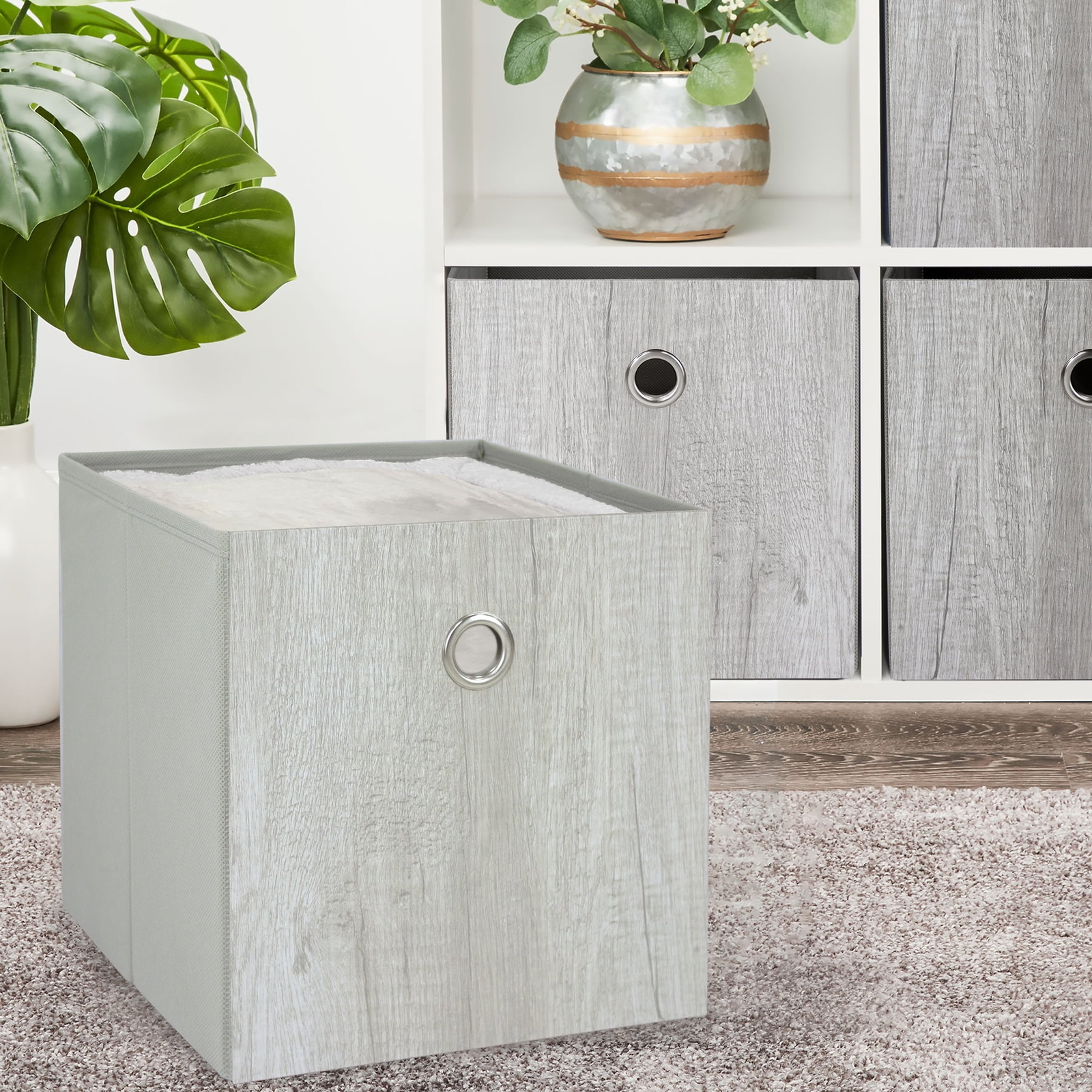 Our Grey Wood Foldable Fabric Storage Box is just what you need to create an organized home. Measuring 10.5" x 10.5" x 11", this box is perfect for storing everything from children's to adult clothing, books, and more, providing ample space to neatly organize everything. Its sturdy round metal handles make it easy to pull them off the shelf and slide them back on. You can bring the professional organization of the box to your living room, bedroom, laundry room, and dorm room. When not in use, you can easily fold the box flat and store it in your closet for later use. This fabric storage box is designed to be used with our Storage Box Organizer (not included) and is made of durable polyester fabric that will not easily lose its shape. With a variety of colors to choose from, you can use our Grey Foldable Fabric Storage Box to perfectly match your home decor. Help you create an organized and comfortable home Includes 4 gray wooden cubes Perfectly match your favorite colors and patterns Convenient handles on the sides of the boxes for easy carrying Can be used with our cubes or on their own When not in use, the boxes can be folded to save space Perfect for storing books, children's and adult clothing in the bedroom, living room, laundry room or dorm Made of durable polyester fabric that is wrinkle-resistant, wear-resistant and retains its shape Dimensions: 10.5"L x 10.5"W x 10.75"H (26.5 cm x 26.5 cm x 27.3 cm)