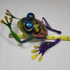 Metal Frog Garden Decor. Multicolor sculpture/figure. Like new Welded Approx. 7" x 6 1/2" x 3 1/2" tall See photos...