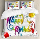 Colorful Duvet Cover Set King Size Birthday Words Floral with 2 Pillow Shams Time to embrace modern looks, feel-good fabrics, and high-quality materials! King, queen, or twin - these 3 pcs duvet cover sets will work in any bed for any season! Woven from 100% brushed microfiber fabric, our duvet cover collection is constructed for maximum strength and ultra comfort only for you and your beloved ones. All you need to do is to simply put our duvet cover on your comforter and secure it with zipper closure, and enjoy your new bedding set! MEASUREMENTS: KING SIZE SET: Duvet Cover (104" W X 88" L) and 2 Pillow Shams (36" W X 20" L). QUEEN Size Set: Duvet Cover (88" W X 88" L) and 2 Pillow Shams (30" W X 20" L). Twin Size Set: 1 TWIN Duvet Cover 68" X 88" + 1 Pillow Sham 30" X 20". The duvet cover FEATURES hassle-free hidden zipper and the pillow shams have an envelope closure. Please note that COMFORTER NOT INCLUDED IN THIS SET. This only duvet cover, allowing you to protect the comforter/duvet insert from dust, mites, and other stains. WRINKLE FREE - The microfiber material creates ultimate softness and comfort, also provides wrinkle, fade, and shrink resistance when properly cared for. Very durable and sustainable material that will not endanger your health or the environment, either. No chemicals used, No dye substance harming the health of you or your family, %100 microfiber recyclable environmentally friendly fabric. LOW MAINTENANCE: Machine washable in cold water. Suitable for tumble dryer use on low heat. Can be ironed on medium heat when necessary. Do not bleach. Choose your style between thousands of different and creative patterns. Or simply find your perfect gift idea ever for housewarming, birthday, bridal shower, Christmas, Mother’s Day, and newlyweds… You can find a theme for everybody and every interest in our Ambesonne Store. The images we display have the most accurate color possible but, due to differences in pc monitors, there can be slight color differences between the product and the image. Due to manual measurement, please kindly allow 1-2 cm discrepancy. The Duvet Cover and Pillow Shams are printed on the FRONT SIDE ONLY, the back of them are PLAIN WHITE-COLORED. This is ONLY the Duvet Cover, sold WITHOUT the Comforter.