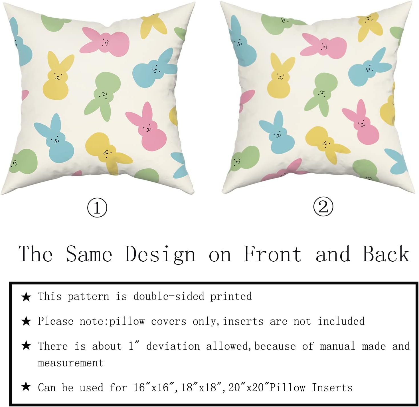 High-quality Material: Cotton, breathable, soft, thick, comfortable to touch. Warm tips: pillows insert is not included. Standard Size: 20 X 20 inch (50cm X 50cm). Our easter pillow covers use a high quality invisible zipper on one side, beautiful and sturdy, pulls smooth, easy to wear. Easter Decor: Our 20x20 easter pillow covers have the same design on both sides. And easter bunny rabbit pattern will create holiday style to your room quickly. Suitable for decorating living room, bedroom, sofa, couch, patio, balcony, car, office. Great Choice for Gifts: Our easter pillow cases 20x20 have clear patterns and no fading or wear issues. It is the perfect gift that you give to family, relatives and friends on holiday or anytime you want. Washing Tips: Our easter throw pillow covers 20x20 can be hand-washed or machine-washed in cold separately, gently cycles only, please do not bleach or iron. Our 20x20 easter pillow cover is designed for you, help you quickly refresh and transform your home decor during the spring, and bring you the latest home fashion. These easter throw pillow cases 20x20 are very suitable for decorating living room, bedroom, couch, patio, balcony, car, office, coffee room, bar etc, and perfectly math with all styles of furniture, such as, bed, sofa, chair. Our easter bunny pillow covers 20x20 made of high-quality cotton, breathable, comfortable, soft, no peculiar smell, well made. It's a great choice when you're shopping for a cushion cover or sofa pillowcase, and it's also a idea gift. Specification Type: Decorative Throw Pillow Case Quantity: 2 Pack Size: 20" X 20"/ 50 cm * 50 cm Material: Made of cotton, durable, soft and comfortable. Washing: Machine washable or by hand, please do not to bleach. Warm Tips:Due to the brightness of the light, there may be slight color differences between the picture and the actual product. After-sales service: We promise to provide you with the best after-sales service. If there is any product quality problem, you can contact us at any time, we guarantee a full refund.