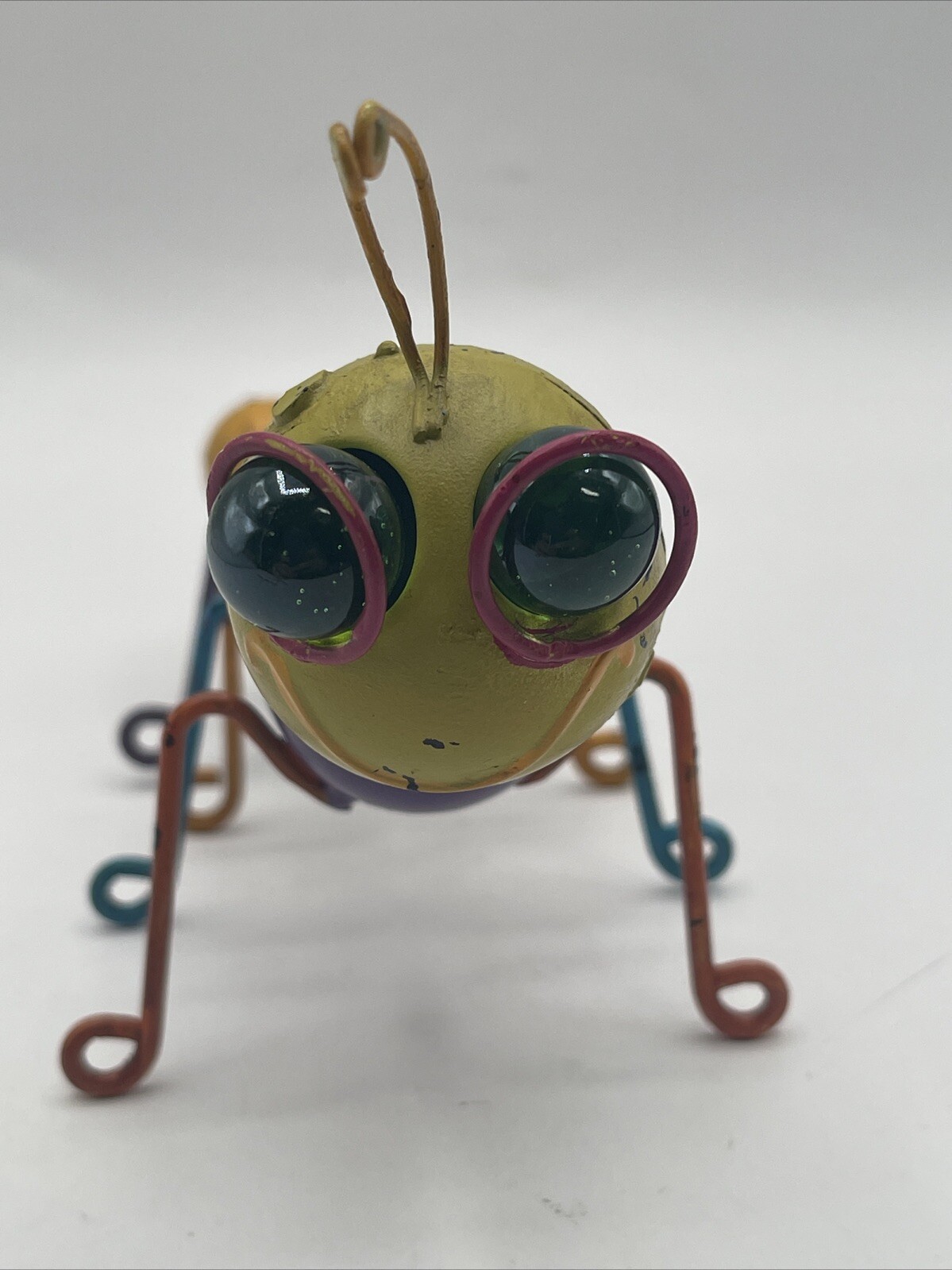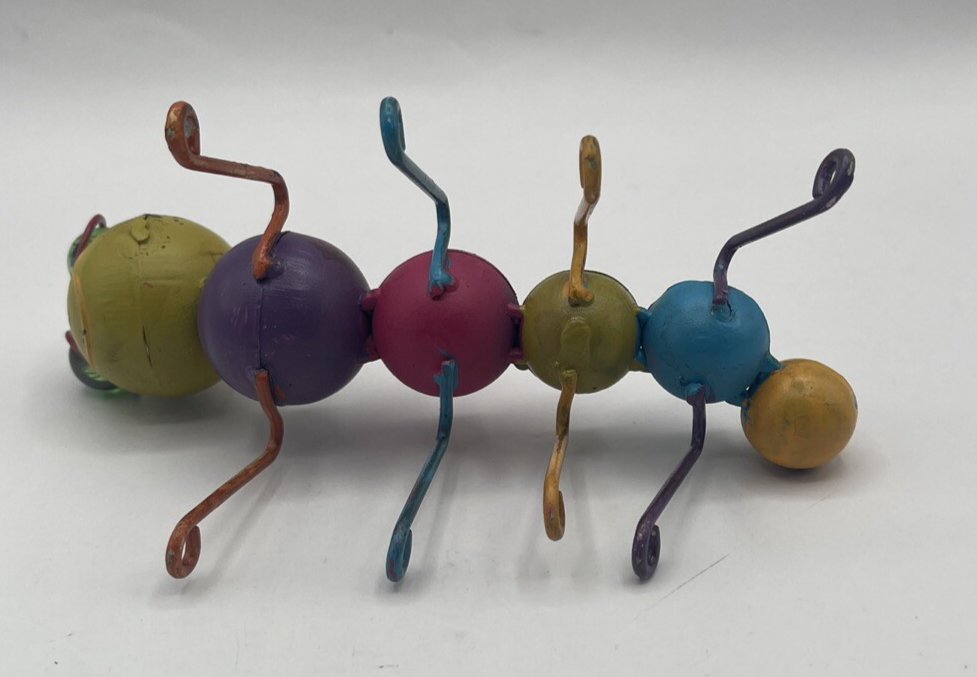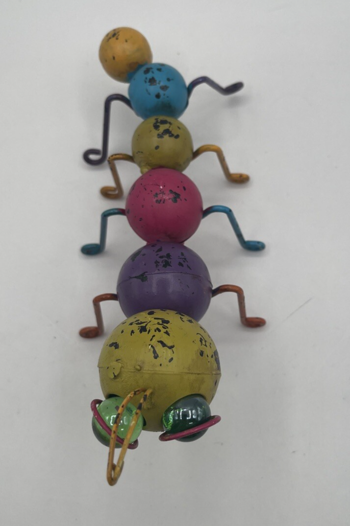 Multicolored Metal Caterpillar Bug Insect Marble Eyes Figure Round Cute Garden Pre-owned. Some wear from use as shown. See measurements and pictures.