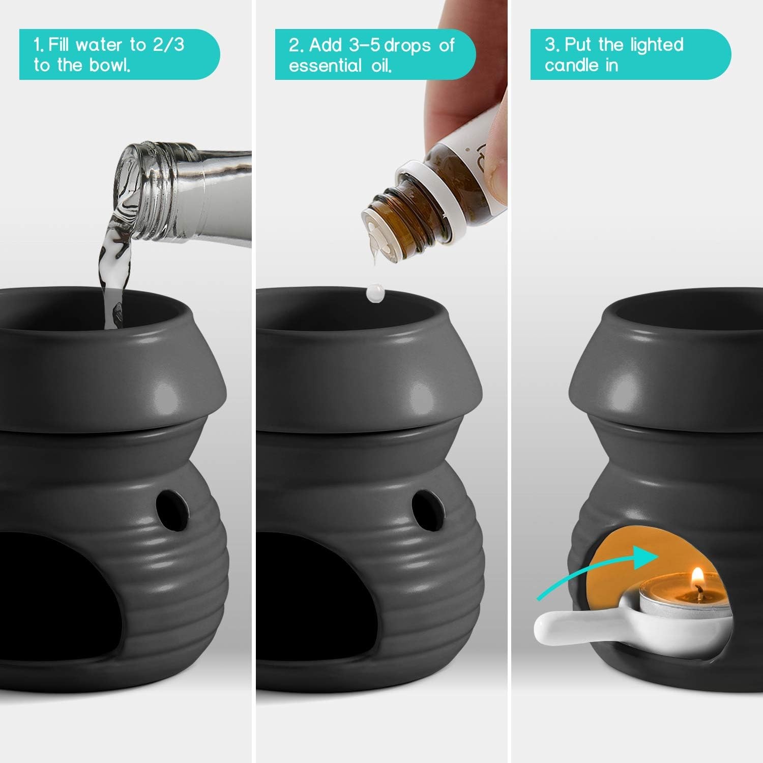 Free eBay listing template designed by dewiso.com ComSaf Essential Oil Burner Wax Melt Burner with Candle Spoon, Aromatherapy Aroma Burner Ceramic Oil Diffuser Candle Tealight Oil Warmer Yoga Spa Home Decor Christmas Housewarming Gift Black 1Pack FREE AND FAST SHIPPING! About this item Ceramic Wax Melts Burners: Made of Top Quality porcelain and fired at 1300℃ high temperature, Finished with a layer of glossy Mineral Glaze; Exquisite Craft and Reliable Quality for every family Removable Oil Burner: This 160ml large capacity aroma lamp extends oil or wax burning time, reducing refill frequency; The split design allows it to be used separately as a candle holder, making it versatile and convenient for continued use Excellent Decoration: Catching the eyes of everybody who pass by in Day, It's a Good Choice for home and office decoration; Amazing nocturnal effect, beautiful and bright enough, It's no doubt the Lead-Role of the Night Characteristic Design: Come with Tealight Spoons for easy place in and out put, no more worry your finger will be hurt by the candle fire; Pleasant and clean aromas spread from this ceramic oil diffuser; Diffuse Slowly and Time Lasting Product Specification: Ceramic Oil Burner x 2 ( Diameter: 7.5cm, Height: 11cm ), Candle Spoon x 2 ( 3.5cm Inner Diameter ); If for any reason, you’re not absolutely satisfied we’ll try our best to help you out Product We offer a 30-Day Return Policy on items which you are not completely satisfied with. You have the option for a full-refund or an exchange of the item. No returns are available on items shipped outside of the US . Shipping We offer Free Shipping to the US and ship within 2 business days of payment, usually sooner. We use UPS express shipping. That's why your products are usually delivered within 3 days . Contact We try our very best to make sure every customer is completely satisfied. If there's a problem , message us! We're happy to help. 24/7 live chat available.