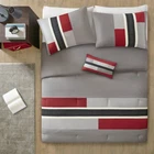 Comforter Set 4 Piece QUEEN Mi Zone Pipeline Reversible Geometric Gray New. Mi Zone Pipeline Comforter Set features a colorful, stripe design with a solid reverse. Set includes one comforter, one decorative pillow, and two shams. Machine Wash Tumble Dry Imported Polyester Full/Queen: 86'' x 90'' Twin: 90'' x 66'' Standard Pillow Sham: 20'' x 26'' Pillow 12"L x 16"W We do offer discounted shipping when more then 1 item is purchased. All our items are packaged with care and shipped within 24 hours of purchase (except for Sundays and Holidays). We offer free returns within 30 days. Please feel free to reach out to us through the portal for any questions you may have.