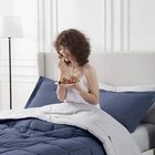 Return Policy Fast Delivery Trusted seller Queen Comforter Set 7 Piece - Reversible Comforters Queen Size Navy, Bed in a Bag Queen All Season, Queen Size Comforter Sets Bedding with Flat Sheet and Fitted Sheet, Pillowcases and Shams Product Description Double Brushed Microfiber Bed In A Bag, Queen Bed Comforter Set: Woven from high quality, 300 GSM microfiber that’s double brushed for ultimate softness, our lightweight, breathable, queen comforter set with sheets will transform your bedroom into a luxurious haven. Queen Comforter Set, 7 Piece: 1 Comforter 88" x 88", 1 Fitted Sheet 60" x 80" fits mattresses up to 16” deep, 1 Flat Sheet 90" x 102", 2 Pillowcases 20" x 30" and 2 Pillow Shams 20" x 26" + 2” flange with envelope closure. Reversible Queen Bed Set: Dual colors on the all-season fluffy comforter keep your bedroom style fresh, and the elegant, diamond-pattern stitching keeps the filling from shifting. The fitted sheet includes elastic all the way around, so it stays in place all night long. Easy Care and Cleaning: Our queen bed in a bag set is machine washable and fade, stain, shrink and wrinkle resistant. Available in a variety of beautiful colors, our bedding comforter sets are durable and made to last. Rest Easy with : We proudly support sustainable practices with OEKO-Tex Standard 100 Certification. Shop queen size comforter sets with confidence because no matter what, we’ve got you covered. Shipping Returns Payment Shipping Shipping is FREE to all addresses other than APO/PO boxes in the lower 48 states. All our stock ships from US-based warehouses. Shipped via USPS or UPS (depending on location and package weight) Unless stated otherwise, all orders will ship within 24-72 hours of your payment being processed. Check our feedback to see the great reviews of FAST shipping we offer. Returns Seller does not accept returns Payment We currently accept payment via eBay managed payments only. Once payment is cleared, we will dispatch your shipment within 1-3 business days. Please refer to the "Shipping" tab for more information regarding shipping speed to your destination.