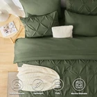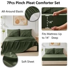Return Policy Fast Delivery Trusted seller Olive Green Comforter Set Queen 7 Pieces Bed in a Bag Green Comforter Pintuck Design Olive Green Bedding Set Pinch Pleated Green Bedding Complete Set with Sheets,Pillowcases&Shams Product Description Fashionable Decoration: Pinch Pleat Bed in a Bag Set create exquisite geometric patterns and look more than stunning that elevate your space with modern and noble elements. it provides timeless elegance and fashion to your bedroom decor. Soft and Breathable: The queen pinch pleat comforter sets have premium microfiber fabric which is breathable and sweat-absorbent. And also the comforter is filled with extremely soft down alternative microfiber which is friendly to those sneezing with goose down and feather bedding; Experience a fabulous night's rest with our sets Elaborate Design: The elastic deep pocket fitted sheet fits mattress max up to 16" deep. That can always keep non-slip no matter how you twist and turn in your bed. The comforter features durable box stitching which offers sophisticated look alongside simplicity and will also stable inside filling What You Can Get: Queen Size bed in a bag includes 1 Comforter 88"x88", 2 Pillow Shams 20"x26", 1 Flat Sheet 90"x102" , 1 Fitted Sheet 60"x80"+14" and 2 Pillowcase 20"x30". Our bed in a bag is packaged in a vacuum bag, so you can dry it in low heat or tap the comforter gently while baking it in the sun to fluffy again Easy Care: The bedding sets are machine washable which can save you more time and energy. For year round softness and prevent pilling up, it's highly recommend to wash it in the gentle cycle with cold water, sun-dry or tumble dry in low when needed. Let our comforter sheets keep providing you and your family with cozy sleeping Shipping Returns Payment Shipping Shipping is FREE to all addresses other than APO/PO boxes in the lower 48 states. All our stock ships from US-based warehouses. Shipped via USPS or UPS (depending on location and package weight) Unless stated otherwise, all orders will ship within 24-72 hours of your payment being processed. Check our feedback to see the great reviews of FAST shipping we offer. Returns Seller does not accept returns Payment We currently accept payment via eBay managed payments only. Once payment is cleared, we will dispatch your shipment within 1-3 business days. Please refer to the "Shipping" tab for more information regarding shipping speed to your destination.