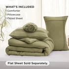 30 Days Return Policy Fast Delivery Trusted seller Queen Comforter Set with Sheet - 4 Pieces Soft Olive Green Bedding Sets, Grid Pinch Pleat, All Season Lightweight Fluffy Bed Set with Solid Boho Comforter, Pillowcases & Sheet Product Description Elegant Home Decor: This comforter set combines the exquisite pinch pleat design with a grid pattern, bringing a touch of sophisticated style to any sleeping space. It is a perfect gift for your loved ones or just to show you care. Premium Filling: Featuring 's thoroughly tested microfiber filling blend, this down alternative comforter maintains the perfect balance between weight and warmth, creating a cloud-like sleeping space all year round. Extra Soft: The prewashed microfiber cover offers exceptional softness and gorgeous natural texture, providing maximum comfort without any rustling noise. Certified for Safety: This comforter set is Standard 100 by OEKO-TEX certified for meeting the highest testing criteria for harmful chemicals and has been found harmless for humans. Easy Care: With the premium microfiber fabric and ’s unique dyeing technique, this comforter set resists fading, shrinking, and seam slippage after washing. Machine wash separately in cold water on a gentle cycle and tumble dry low. Do not iron. Inclusive Bedding Set: This queen size comforter set comes with 1 comforter (90" x 90"), 2 pillowcases (20" x 26"), 1 fitted sheet (60'' x 80'' + 14'' ). With full elastic, this sheet can grasp most mattresses up to 14" tightly, keeping it snug without shifting. Shipping Returns Payment Shipping Shipping is FREE to all addresses other than APO/PO boxes in the lower 48 states. All our stock ships from US-based warehouses. Shipped via USPS or UPS (depending on location and package weight) Unless stated otherwise, all orders will ship within 24-72 hours of your payment being processed. Check our feedback to see the great reviews of FAST shipping we offer. Returns As our valued customer, we will do our best to make sure the product you receive arrives to you on time and as expected. If you are not satisfied with your purchase, please contact us within 30 days of receiving your order to process a return. Payment We currently accept payment via eBay managed payments only. Once payment is cleared, we will dispatch your shipment within 1-3 business days. Please refer to the "Shipping" tab for more information regarding shipping speed to your destination.