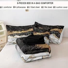 Return Policy Fast Delivery Trusted seller King Comforter Set with Sheet 8 Pieces Black Gold Marble Comforter Set King Size Bed in a Bag Gold Black Metallic Marble Bed Set Luxury King Bedding Western Comforter Set(Black Gold,King) Product Description KING SIZE : comforter set 8 pieces bed in a bag king sets include one comforter 104"x90"; four king pillowcases 20"x36"; one flat sheet 110"x104"; one fitted sheet: 78"x80" (fits mattresses up to 16") ,one cushion cover 18"x18" PREMIUM FILLING : Whole piece microfiber filling with tight stylish stitching prevents fill from clumping or shifting;The comforter is fluffy and lightweight; It will not put downward pressure on your body; This soft and breathable fabric is good for a comfortable night’s sleep SOFT MATERIAL : 100% soft microfiber outer fabric with ultra soft microfiber inner fill;Ultra soft, smooth and adorable to your skin EASY CARE : Machine washed in cold water on gentle/delicate cycle with similar colors;Do not bleach;Iron on low heat when needed;WARM TIPS:It comes compressed and air sealed for convenience, it might be some wrinkles when you receive it;It’s recommended that you wash and dry before use UNIQUE DESIGN : Special unique design pattern comforter add brightness and style to your home, bringing you a nice sleep;Warm Tips:Actual color may vary from the color on your screen due to monitor color restrictions Shipping Returns Payment Shipping Shipping is FREE to all addresses other than APO/PO boxes in the lower 48 states. All our stock ships from US-based warehouses. Shipped via USPS or UPS (depending on location and package weight) Unless stated otherwise, all orders will ship within 24-72 hours of your payment being processed. Check our feedback to see the great reviews of FAST shipping we offer. Returns Seller does not accept returns Payment We currently accept payment via eBay managed payments only. Once payment is cleared, we will dispatch your shipment within 1-3 business days. Please refer to the "Shipping" tab for more information regarding shipping speed to your destination.