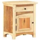 Introduce an air of mid-century elegance to your interior with our beautiful solid wooden bedside cabinet! This nightstand is made of solid mango wood and reclaimed wood that has been sourced from joists, floors and support beams from old buildings being demolished, and it can consist of different types of wood like pine, teak, beech, oak, cedar, mango wood, acacia, etc. This means the reclaimed wood retains the characteristics of these different types of wood. Reclaimed wood is already aged, weathered and dried, so it doesn't shrink or bend. Every step of the process is carried out with the greatest care, be it polishing or lacquering. The exquisite craftsmanship and the graceful wood grains make every piece of furniture distinctive and slightly different from the next. Additionally, this telephone stand is distinguished by 1 drawer and 1 door, offering an ideal solution for keeping your smaller items organized and within reach. The bed cabinet is easy to assemble. Important note: Colors and wood grains vary from piece to piece, making each of our side cabinet unique; the delivery is random. Material: Solid reclaimed wood, mango wood, MDF Dimensions: 15.7" x 11.8" x 19.7" (W x D x H) With 1 drawer and 1 door Polished and lacquered California Proposition 65 Warning: This product can expose you to chemicals including wood dust, which is known to the State of California to cause cancer. For more information go to . Shipping Restrictions Due to the limited access of our couriers, this item cannot be delivered to the following locations: Alaska Federated States of Micronesia Guam Hawaii Marshall Islands Military Posts (APO / FPO) Palau Puerto Rico US PO BOX Virgin Islands Our customer support will contact buyers for orders with no shipment service, and these orders will be cancelled and fully refunded afterwards.