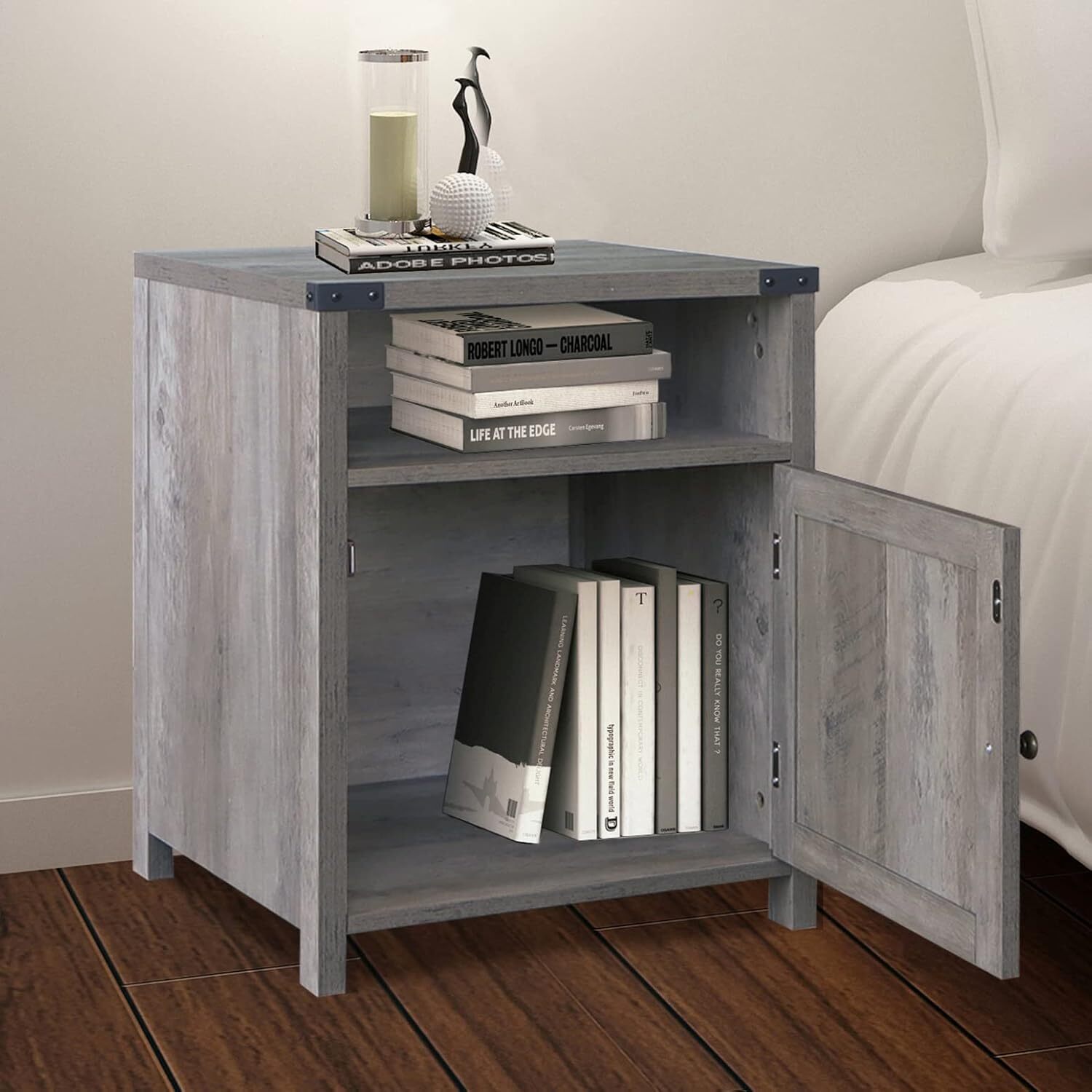 This nightstand is a perfect blend of style and function! The farmhouse-inspired X-frame doors add charm, while the spacious cabinet and open shelf keep everything organized. The sturdy build and versatile design make it great for bedrooms or living rooms. Love the washed oak finish—it fits any decor seamlessly. A fantastic buy for extra storage without sacrificing aesthetics!