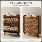 Beautify your entryway, hallway or living room with our stylish and versatile shoe cabinet, designed to keep your shoes organized and clutter-free. This compact yet spacious cabinet can neatly store over 22 pairs of shoes, from slippers to high heels, with ease. Featuring two flipping drawers with dual-layer racks, it adapts to various shoes and includes easily detachable shelves for added flexibility. The top shelf, equipped with a thoughtful fence, is perfect for keys and small items, while the flipping doors ensure excellent air circulation to combat shoe odors. Built with durable medium-density fiberboards, this cabinet is sturdy enough for a large family’s shoe collection. Its sleek farmhouse brown finish and modern design enhance any home decor, making it perfect for entryways, hallways, and living rooms. The included anti-tipping buckles secure it to the wall for extra stability and safety, particularly around children. Easy to assemble with the provided instructions and parts, this shoe cabinet offers both practical storage solutions and an elegant decoration to your home Say Goodbye to Scattered Shoes: Our shoe cabinet is compact yet spacious enough for a big family, capable of storing over 22 pairs of various shoes neatly and effortlessly. It features two flipping drawers, each equipped with a dual-layer shoe rack for slippers, ankle boots, high heels, and more. To enhance storage flexibility, the shelves can be easily detached, providing additional space for more shoes Multiple-Layer Storage Space: Tired of rummaging for keys before heading out? Our shoe cabinet features multiple well-designed compartments to solve your storage problems. The spacious top, with thoughtful fence, holds your keys and other odds and ends. The flipping doors ensure good air circulation inside, accelerating shoe odors removal. Additionally, the space beneath the cabinet can be used to further organize your shoes Highly Stable Frame: Built with premium medium-density fiberboards, the entryway shoe cabinet is durable and sturdy enough to accommodate many shoes. Additionally, it is thoughtfully designed with anti-tipping buckles to firmly attach the shoe cabinet to the wall, enhancing its stability and preventing accidental injuries, especially for kids during use Sleek Entrance Shoe Cabinet: Our built-in shoe cabinet seamlessly combines aesthetics and versatility, featuring classic farmhouse brown, a sleek outlook and flipping doors. Its timeless style fits various home interiors, making it ideal for entryways, hallways, and living rooms. Our stylish and space-saving shoe cabinet can beautify your room, greatly improving your daily mood Simple Assembly & Instructions: The show storage cabinet comes with high-quality main parts and complete accessories and an explicit instruction manual, making assembly a breeze. If you have any queries about the product, please reach out to us in time. All issues will be resolved within 24 hours