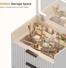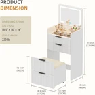 Product Description About this item 【Unique Fluted Panel Design】 - Attractive fluted waveform panels add distinctive charm for the dressing table, enhance the overall aesthetic, can complement any decor style. And the metal handles add a refined touch to the overall look of the desk 【Vanity Set with 3 Colors Lights】- The lighted vanity table comes with HD flip top mirror with 3 modes (warm, natural, cold white), adjusting the brightness according to different scenes and makeup needs by long pressing the smart touch button 【Spacious Storage Capacity】- Featuring three drawers (visible top drawer & hidden storage space for tall bottle) and an extra drawer under the chair, this mini vanity provides plenty of space for your cosmetics, brushes, and other beauty essentials 【Modern 3 in 1 Versatile Desk】 - This small vanity can be used as a make up table, study desk and nightstand. It space saving design is perfect for bedroom, dressing room, apartment, dormitory, loft, kids’/teens’ room, children’s nursery 【Vanity Chair with Wheels】- A soft cushioned stool with 4 flexible wheels will give you a more comfortable makeup experience, under the stool is a large hidden drawer with metal silent slide rails, which can store our daily necessities Christmas Gift for Little Girls/Kids/Teen: Vanity Set With Mirror And Stool 3-in-1 Vanity Desk with Flip-up Mirror and Hidden Chair Mirror Adjustable with 3 Colors LED Lights CleverSpace Saving Design Small Vanity with More Hidden Storage A drawer under glass tabletop An extra 8" depth hidden storage compartment behind top drawer Second drawer with metal guide rail Cushioned stool with a hidden big drawer Spacious desktop while flip down the mirror Additional Details about Mini Vanity Desk Visible Glass Top & 8'' Hidden Storage Space The drawer top of this make up vanity table is transparent, you can easily find the cosmetics in drawers you need An extra storage compartment for your tall bottle skincare product, like toner, essence, lotion... Storage Stool with Wheels & Metal Guide Rail This dressing table is equipped with sturdy metal slide rail drawer under the stool, which can conveniently store unopened cosmetics The chair with 4 wheels can be moved flexibly, which bring a convenient experience when you makeup, while offering a weight capacity of 220lbs Compact Vanity - Perfect Size for Multiple Scenes: Loft/Apartment/Dormitory Modern Makeup Vanity Desk with HD Lighted Mirror for Bedroom