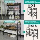 Expandable Shoe Rack for Closet: This 2-tier shoe organizer stretches from 18.5" to 33.8" and holds up to 16 pairs of adult shoes, extra bottom storage for flats, slippers and flip flops enough. Customize your space effortlessly! Easy to Assemble: Get organized in minutes—no tools required! Simply hand-tighten a few screws, and your shoe rack is ready to use. Ready to organize your footwear collection in 5 minutes flat Heavy-Duty Strength: Built with reinforced metal pipes, this sturdy shoe rack resists stains and moisture while supporting up to 15 lbs. Four wear-resistant foot covers ensure stability and durability while protecting your floors from scratches. No more stressing over heavy footwear like leather boots or basketball shoes Wipe-Clean & Weather-Resistant: Crafted from premium metal with a sleek, rust-resistant finish, this shoe organizer wipes clean in seconds with a soft, damp cloth. A low-maintenance solution that keeps your space tidy without extra effort Versatile Storage Solution: You can move the shoe rack easily with the arch handle. Perfect for any living space – house, dorm, or apartment. The ultimate space-saving essential!