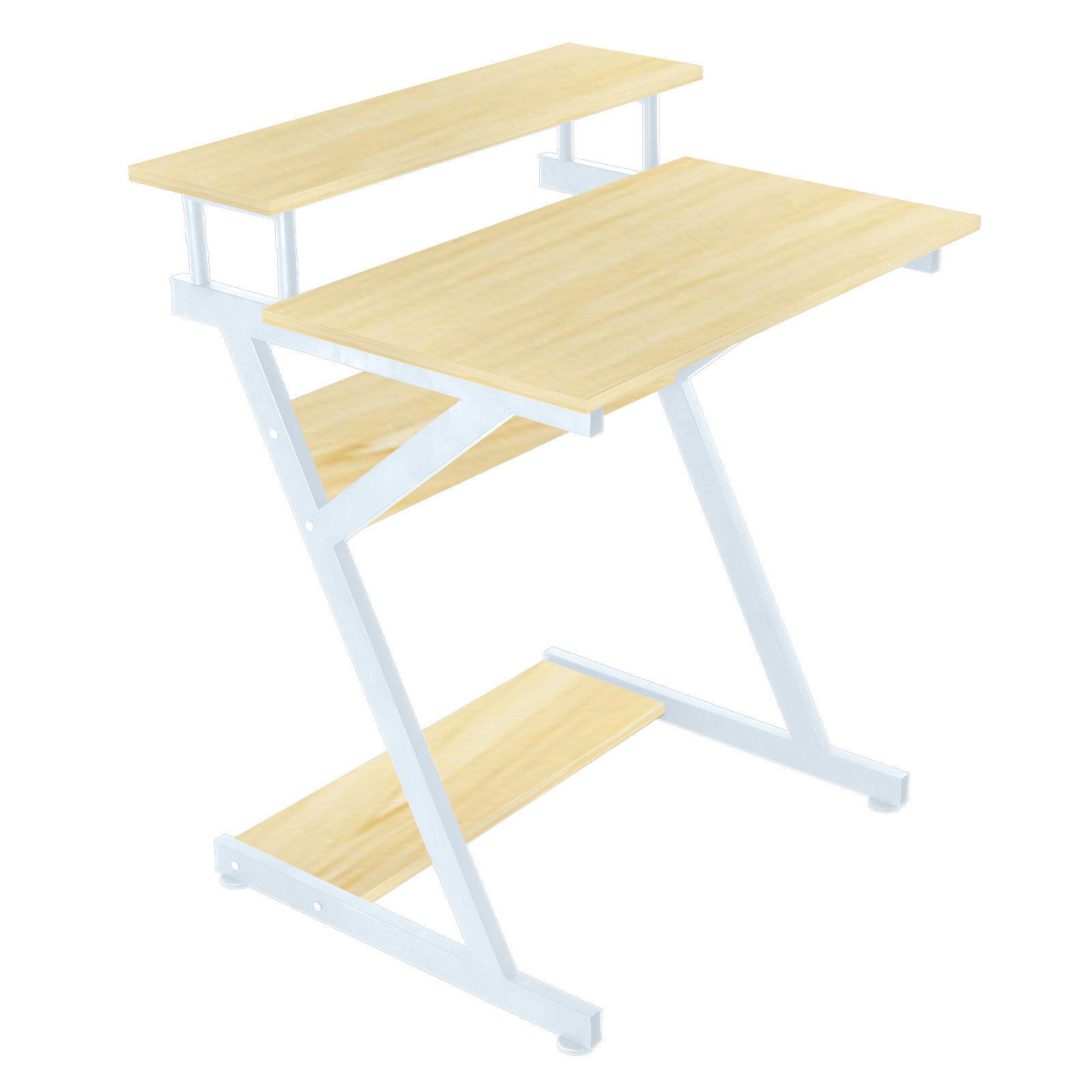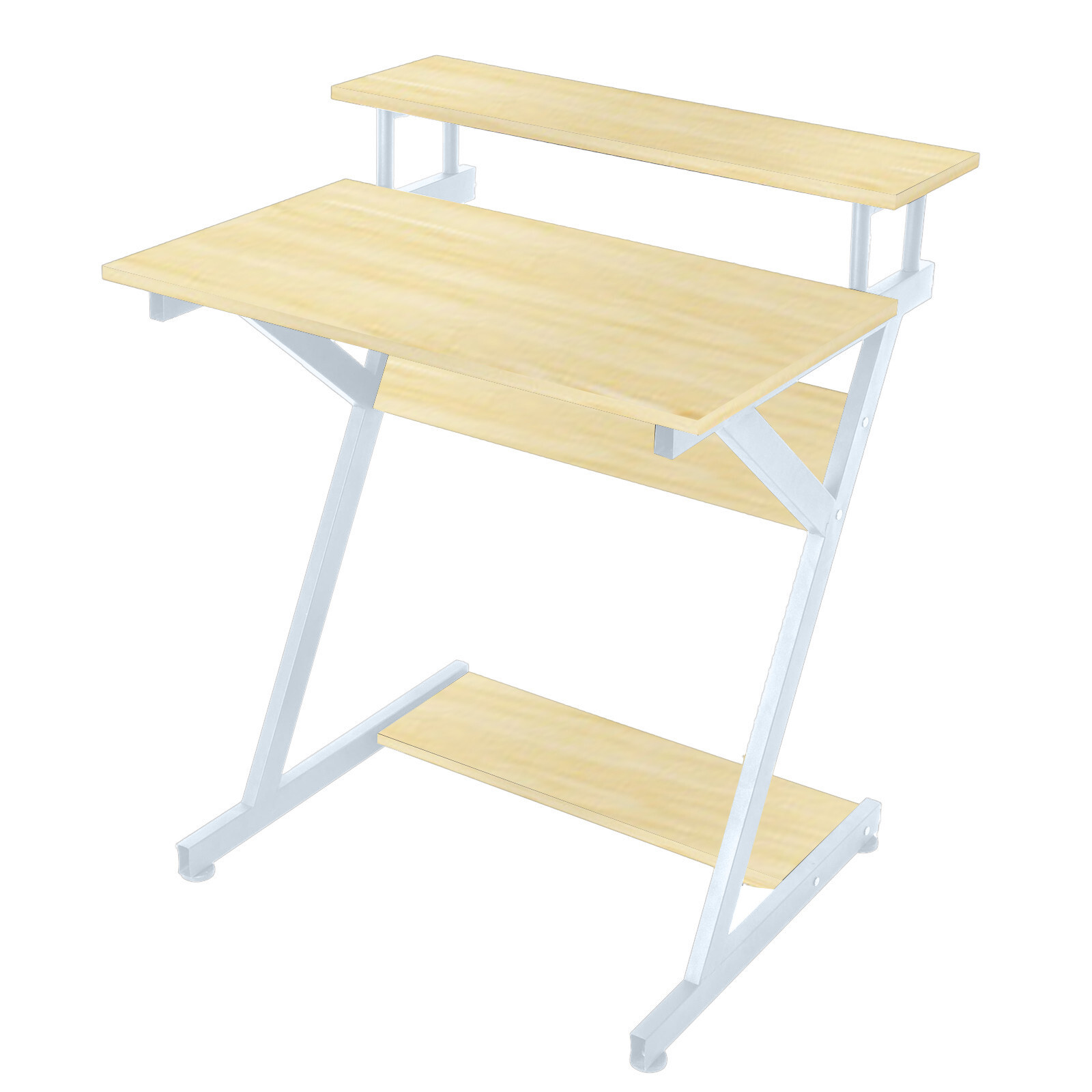 Computer Desk with Monitor Shelf Corner Study Writing Desk for Small Spaces Features: Save space: There is a shelf on the desk. It can accommodate most of your necessary office accessories. Large desktop: The spacious desktop provides enough space for your keyboard, speakers, accessories, etc. Multifunctional workbench, which can be a computer desk, writing desk, game table, printer 4. The package contains all the hardware and instructions for assembly. It's easy to put together with instructions. Sturdy Z-shaped metal structure. Durable, better load, safe to use. Easy to install, just follow the instructions to install Specification: Product name: computer desk Color: Beige Material: MDF + steel frame Product size: 84x62x60cm/33.2x24.5x23.7in Packing size: 89.2x55x12/35.2x21.7x4.7in Weight: 11kg/24.2lb Package Contents: 1x computer desk 1x screw package 1Xmanual