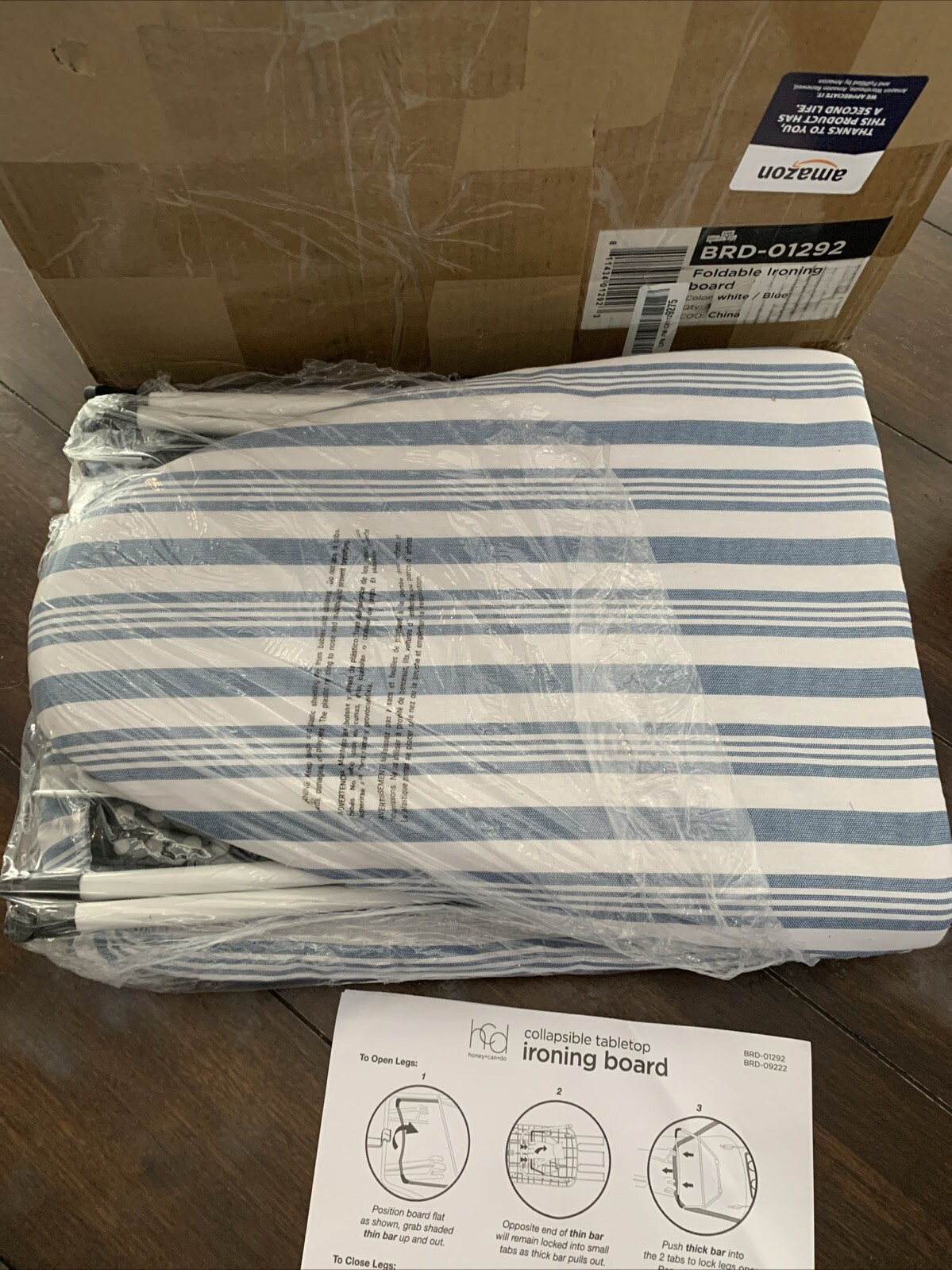 Country of Origin:ChinaSize:32” L x 12” WColor:BlueFabric Type:PlasticManufacturer:Honey-Can-DoMounting Type:Tabletop MountUPC:7445003047080Brand:Honey-Can-DoIs Foldable:YesModel:Honey-Can-Do BRD-09222Item model number:BRD-09222gtin13:7445003047080Pattern:SolidProduct Dimensions:32.09"L x 12"W x 8.07"HBatteries required:NoIncluded Components:Folding Tabletop Ironing Board With Iron RestAssembly required:YesMaterial:PlasticNumber of pieces:1Type:Does not applyItem Weight:3.77 Pounds